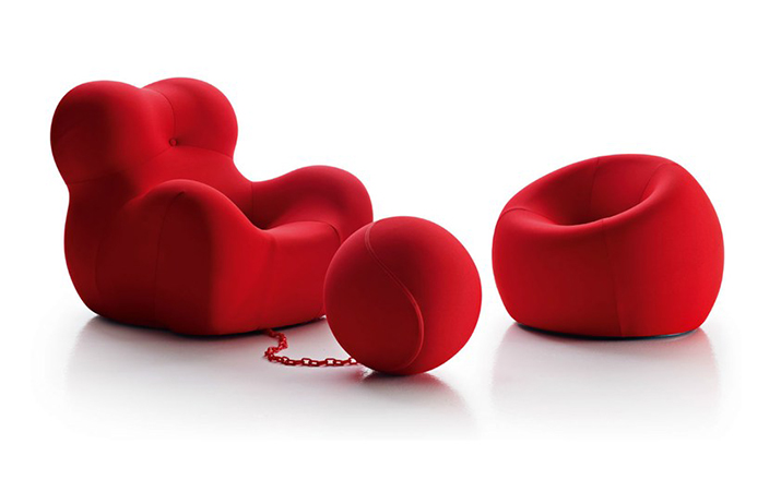 自从Up系列1969年面世以来,就成为一款最杰出的设计。此系列七款大小不一的坐具给人们以非凡的视觉冲击,让它们显得与众不同。Up5是此系列中最著名的一款,一个像女人的坐具与一个球形的脚凳连在一起,似乎要让女人屈服。其由意大利著名设计师Gaetano pesce设计,外形模仿女性性感的曲线轮廓,而且为了让使用者坐在上面能感受到超级舒服的感觉,特意将性感曲线的各个部位都加以放大。目前有UP5与UP6两种型号,适用不同体型的人。