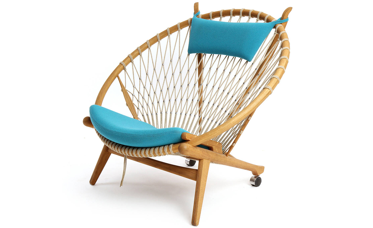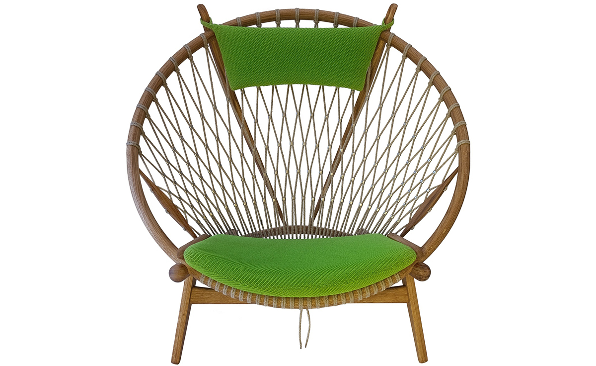 Circle Chair(圈椅)是Hans J.Wegner设计的经典作品之一,他的设计不跟随潮流,尊重传统,承袭文化,欣赏自然;是一种富于“人情味”的现代美学。Circle Chair(圈椅)的椅背是由一个圆形木质箍圈和手工编织绳索构成,网状椅背富有弹性,清凉舒适,椅座可坐两人,无论是情侣还是父母与孩子,都可亲密的坐在一起,这也是圆椅非常吸引人的特别之处。水曲柳或胡桃木木椅身,椅背网纯手工编织,枕头垫和座垫为布面。