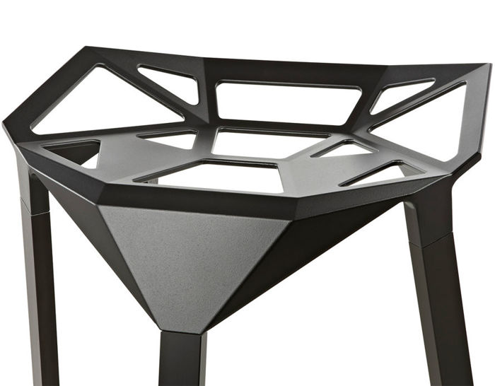 Stool One(几何吧凳/变形金刚吧凳)是德国设计师Konstantin Grcic(康士坦丁·葛切奇)的设计作品。 Stool One(几何吧凳/变形金刚吧凳),镂空钻石的坐面设计,棱角的触感更时尚大气,视觉上的冲击,艺术的价值,无论搭配什么样的环境,都是显得那么融入,那么个性。是现代风格酒吧、家庭吧椅理想的选择,坐感舒适,用材讲究,超现代风格,是一把艺术性与实用性相结合的经典。