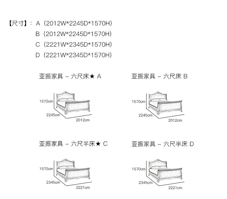 亚振家具 - 六尺床 产品尺寸/示意图
