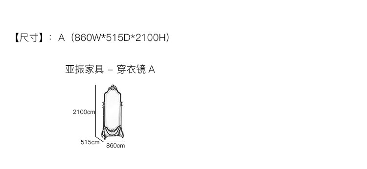 亚振家具 - 穿衣镜 产品尺寸/示意图