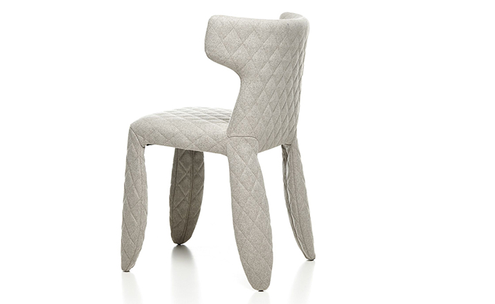 "A soft,puffy and stylish chair with an optional monster face embroidered on the backrest.The monster is a symbol of the eternal battle between opposite forces that take place in life and can be easily recognized inside ourselves,if we have the courage to open our eyes.Scary? Not at all!You forget about the monster once you sit down and enjoy the chair's comfort and softness.Marcel Wanders grew up in Boxtel,the Netherlands and graduated cum laude from the School of the Arts Arnhem in 1988.His fame started with the iconic Knotted Chair in 1996.He is now designing for the biggest European contemporary design manufacturers including Moooi of which he is also art director and co-owner.He works on architectural,interior design and consumer home appliances.His designs have been selected for the most important design collections and exhibitions around the world.Monster chair is offered with a synthetic leather upholstery in black.The chairs can be ordered with or without monster face and with or without armrests. The monster embroidery is identical in both versions."