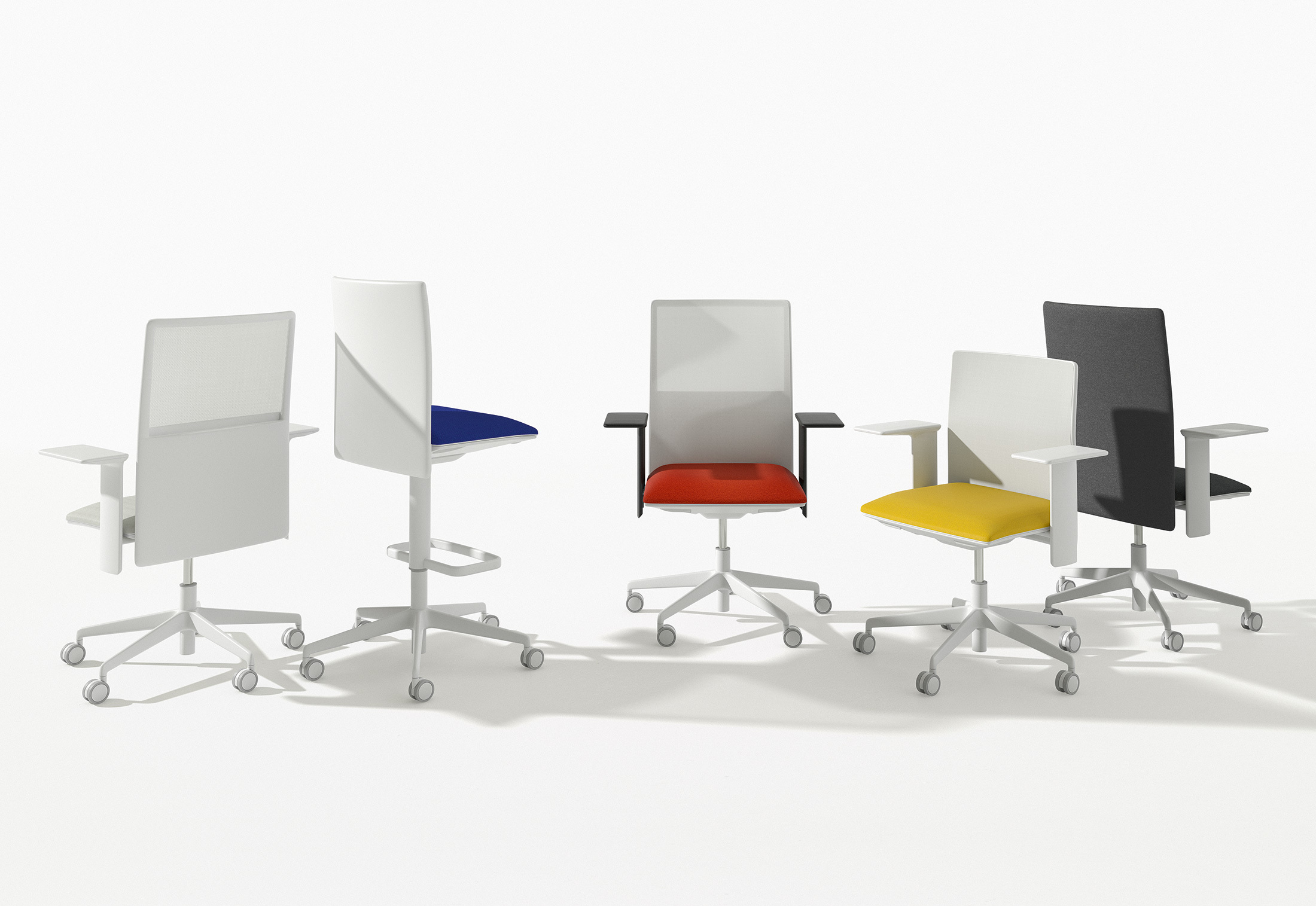 保护性的靠背提供两个高度的庇护和保护:低姿态的会议室和会议室,高创意工作空间。两种高度都有网格或可定制的室内装饰,有或没有3D扶手。为了获得最佳的舒适度,引人注目的扶手可以进一步指定为小或宽的宽度,作为小型平板电脑或智能手机的支持。