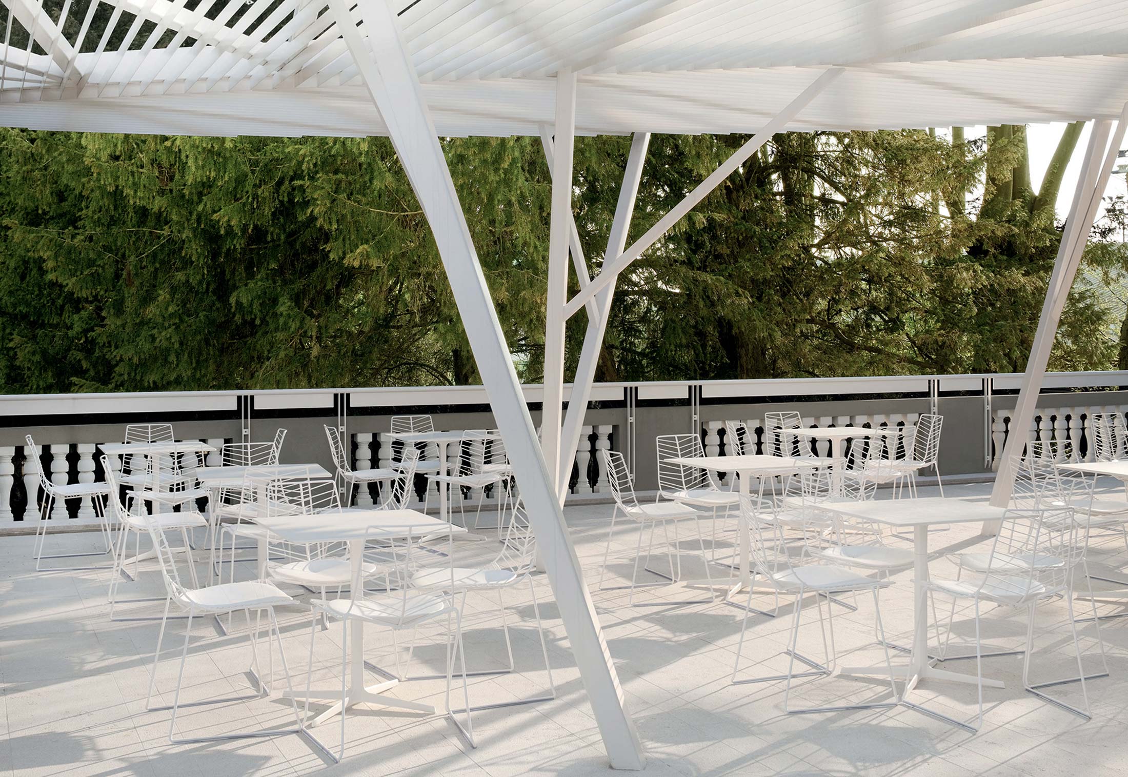 基座有三脚或四脚。全部采用白色,摩卡或绿色涂漆钢材制成。防水HPL上衣有灰色可供选择。