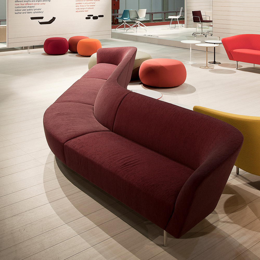 Loop有一个带衬垫的木制框架,覆盖着织物,皮革,人造皮革或客户自己的面料。 框架安装在缎面钢结构上。 它的多功能性使Loop成为小型和大型空间的理想解决方案:客户可以选择两座或三座版本,也可以根据需要组合模块。 座垫有可拆卸的盖子。