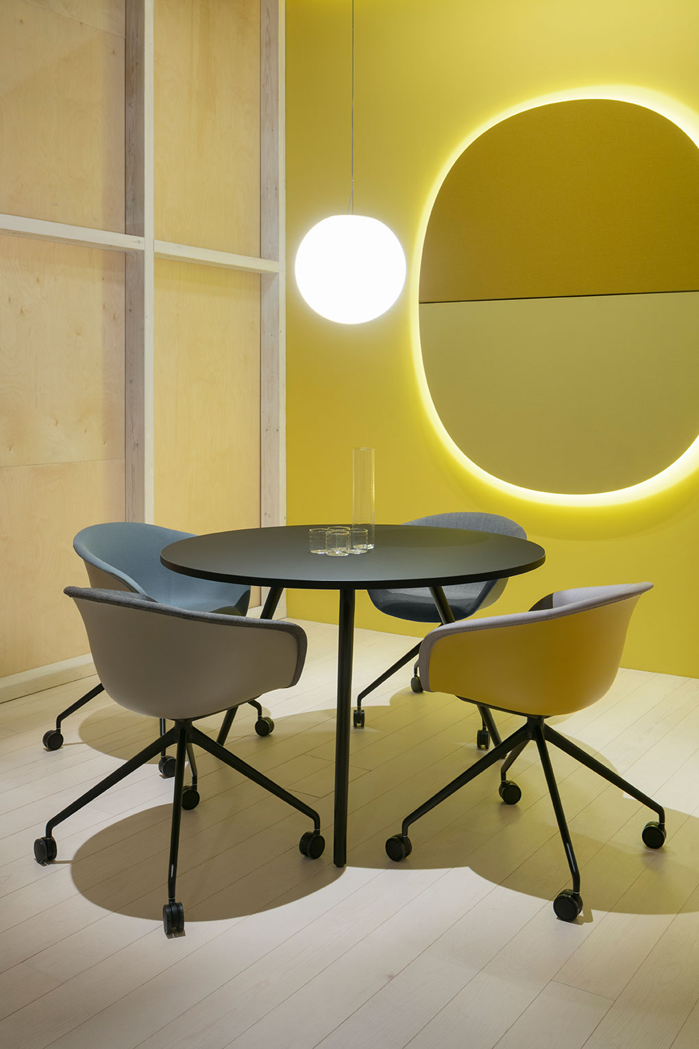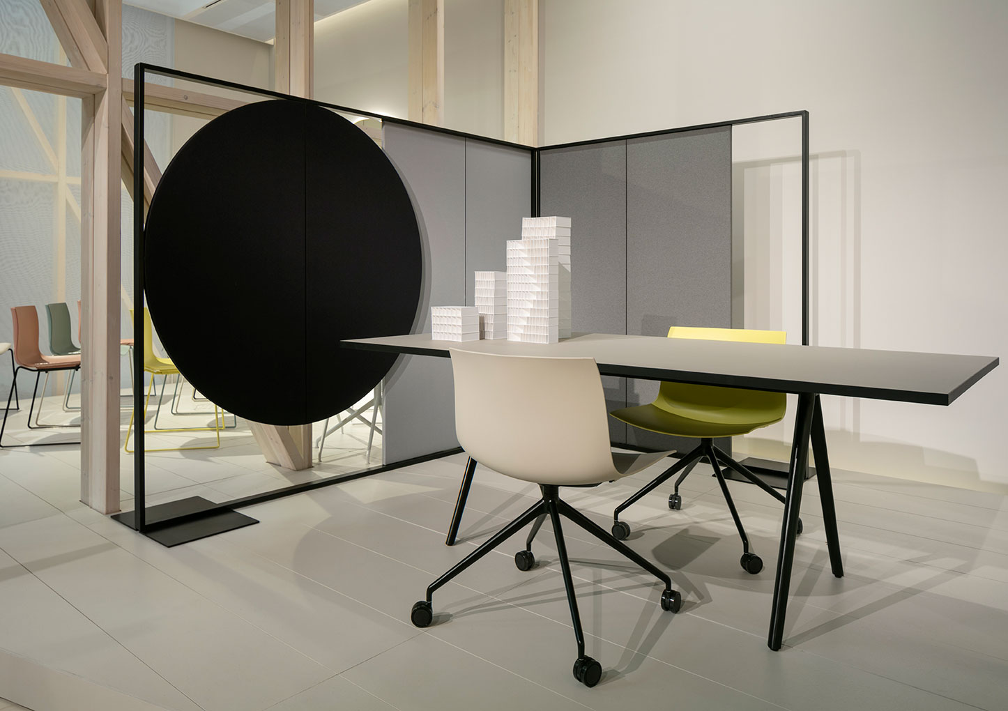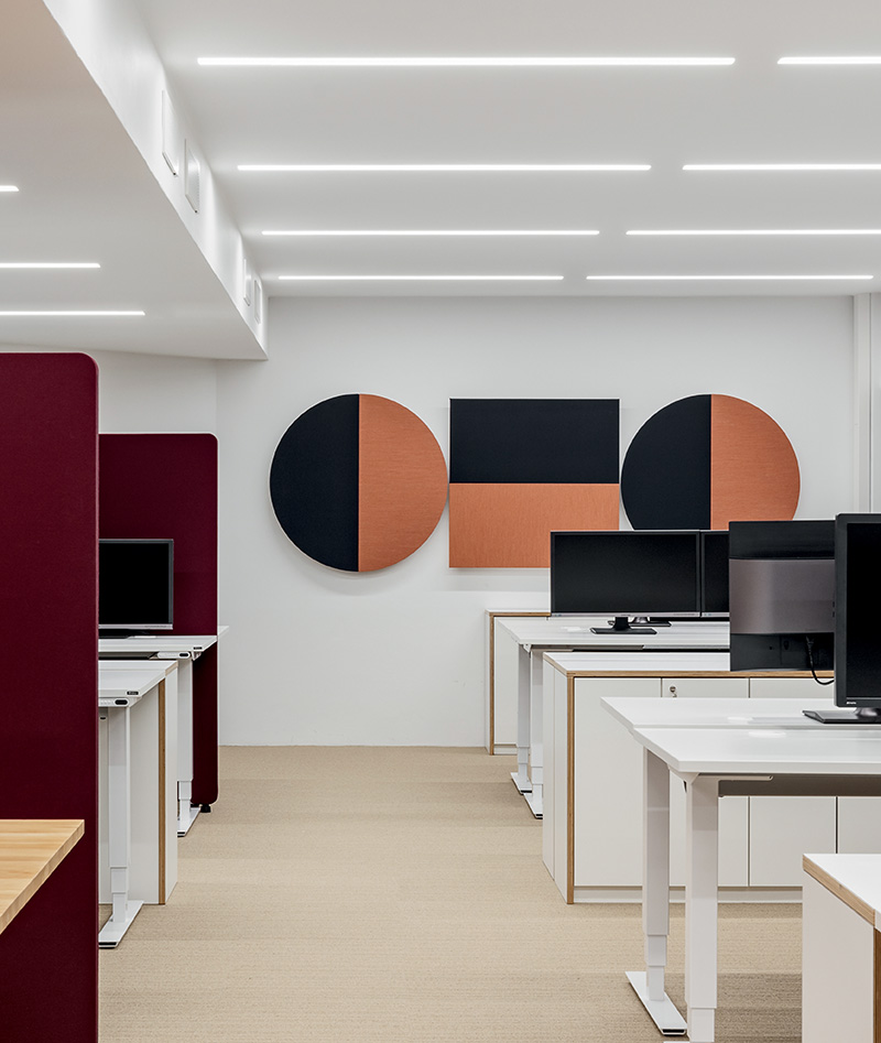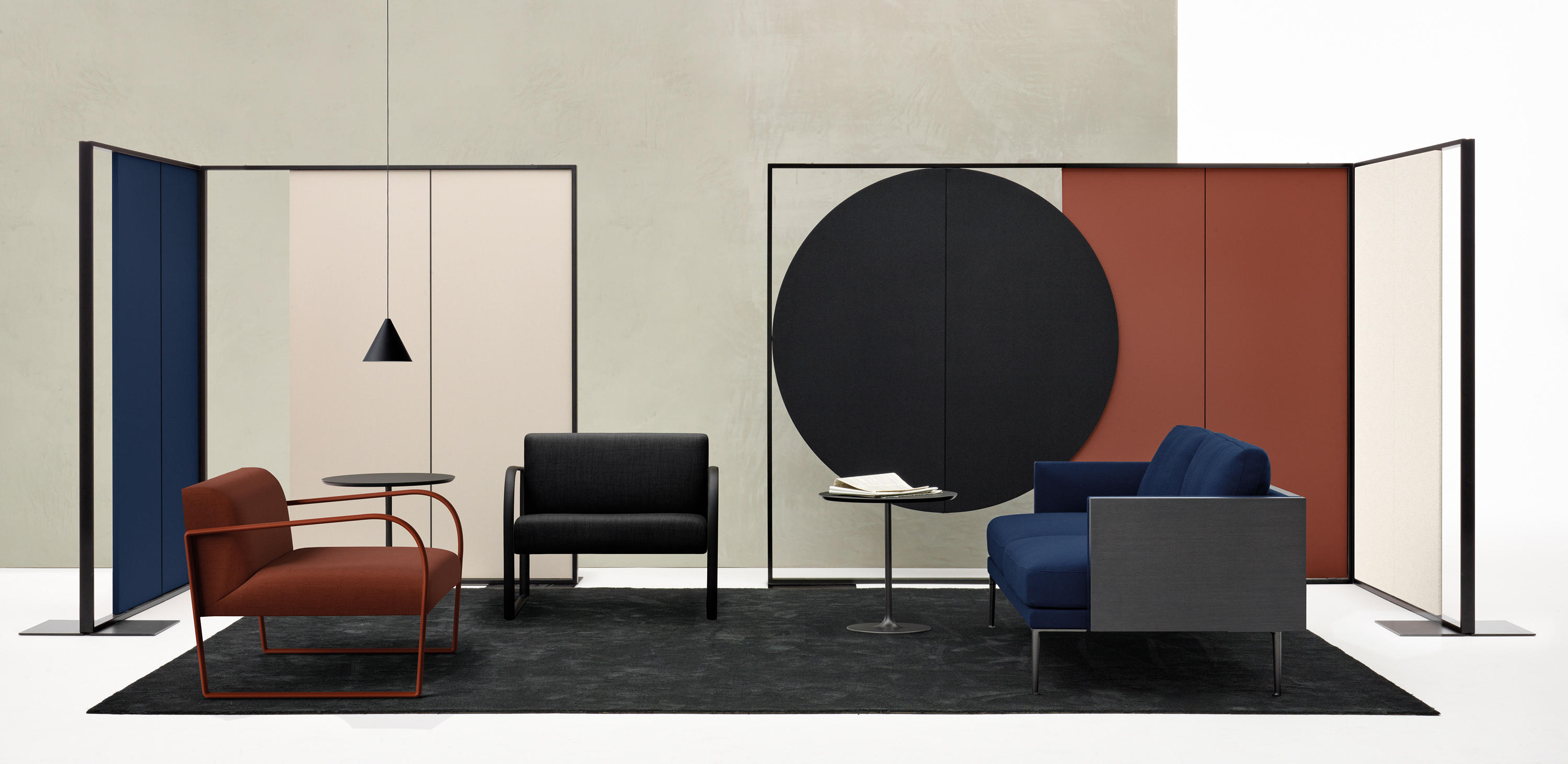 Parentesit是一个装饰模块墙板的集合,为当代共享空间提供舒适。粗体的图形形式有三种形状——圆形、正方形或椭圆形——可以通过添加扬声器或环境光进一步定制,以创建既实用又现代的视觉元素。该系列现在由独立版本补充,这是一个模块化的独立系统,用于在共享的工作空间或协作环境中进行集中注意力或安静对话。