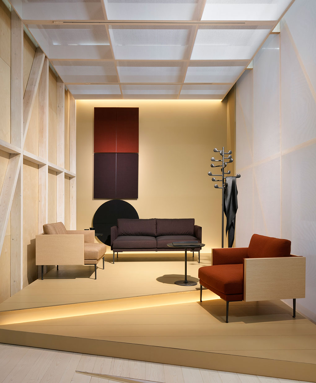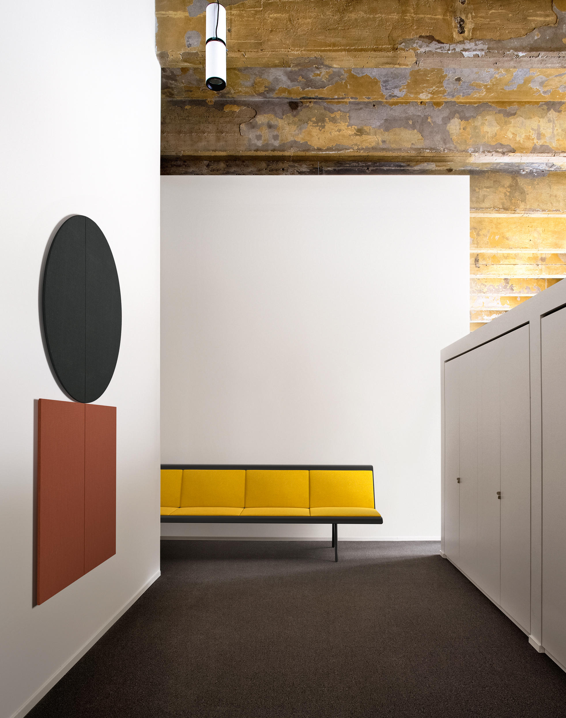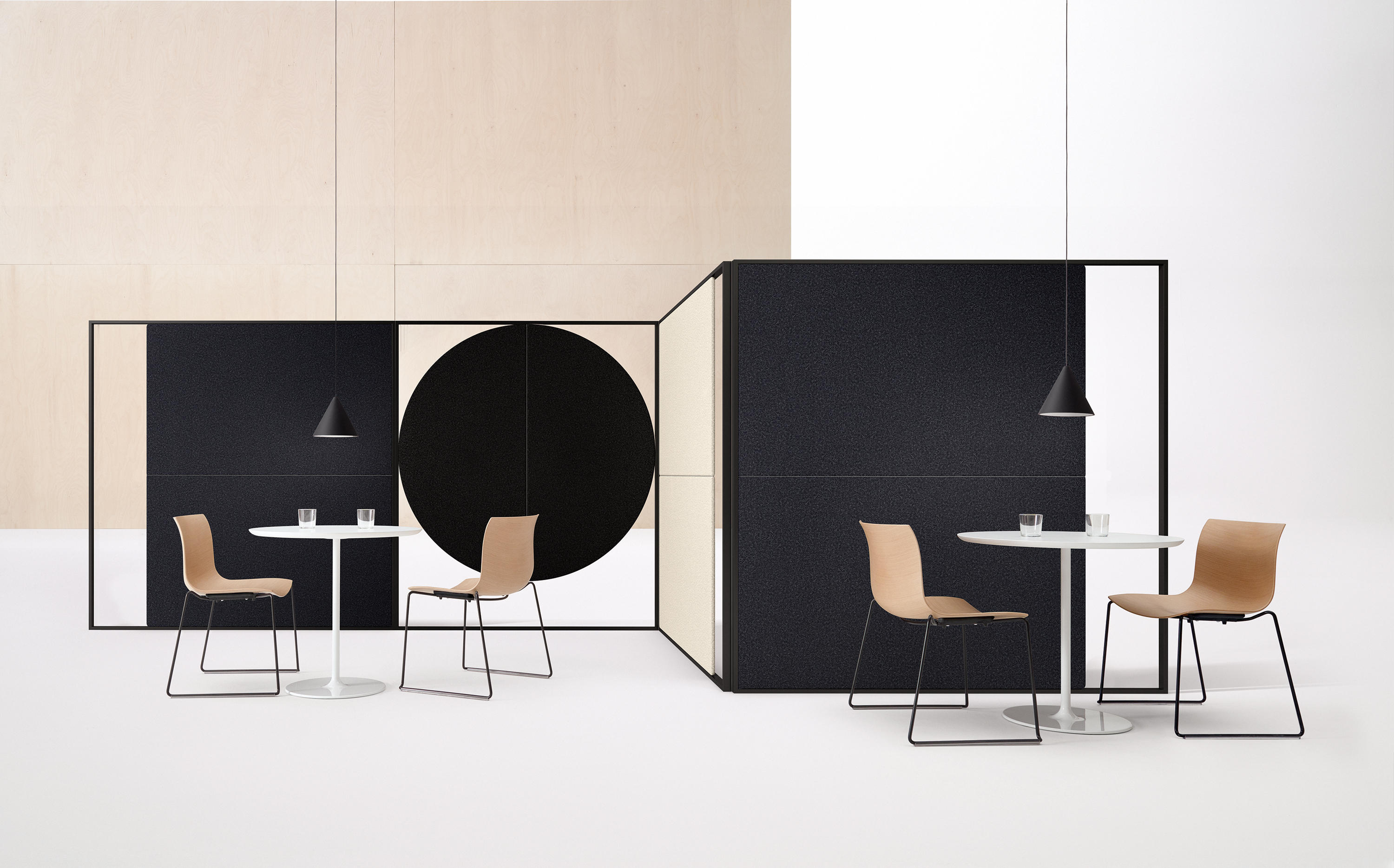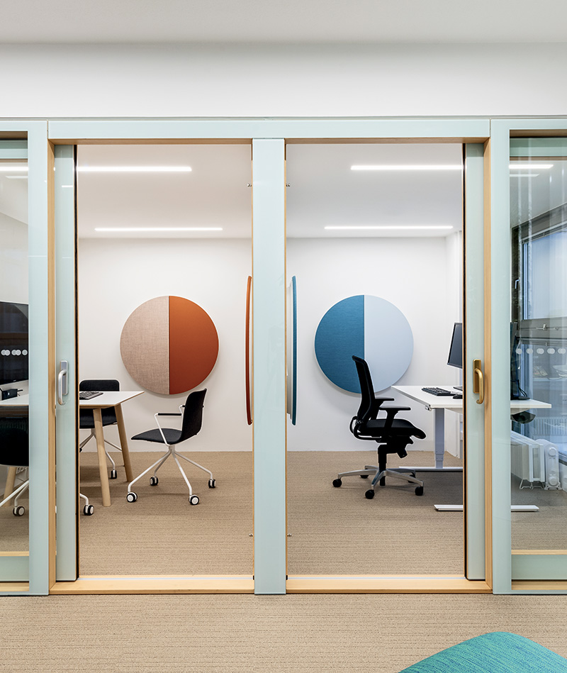 Parentesit是一个装饰模块墙板的集合,为当代共享空间提供舒适。粗体的图形形式有三种形状——圆形、正方形或椭圆形——可以通过添加扬声器或环境光进一步定制,以创建既实用又现代的视觉元素。该系列现在由独立版本补充,这是一个模块化的独立系统,用于在共享的工作空间或协作环境中进行集中注意力或安静对话。