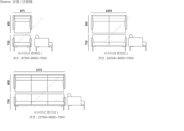 Steeve 沙发/沙发椅 系列尺寸/示意图