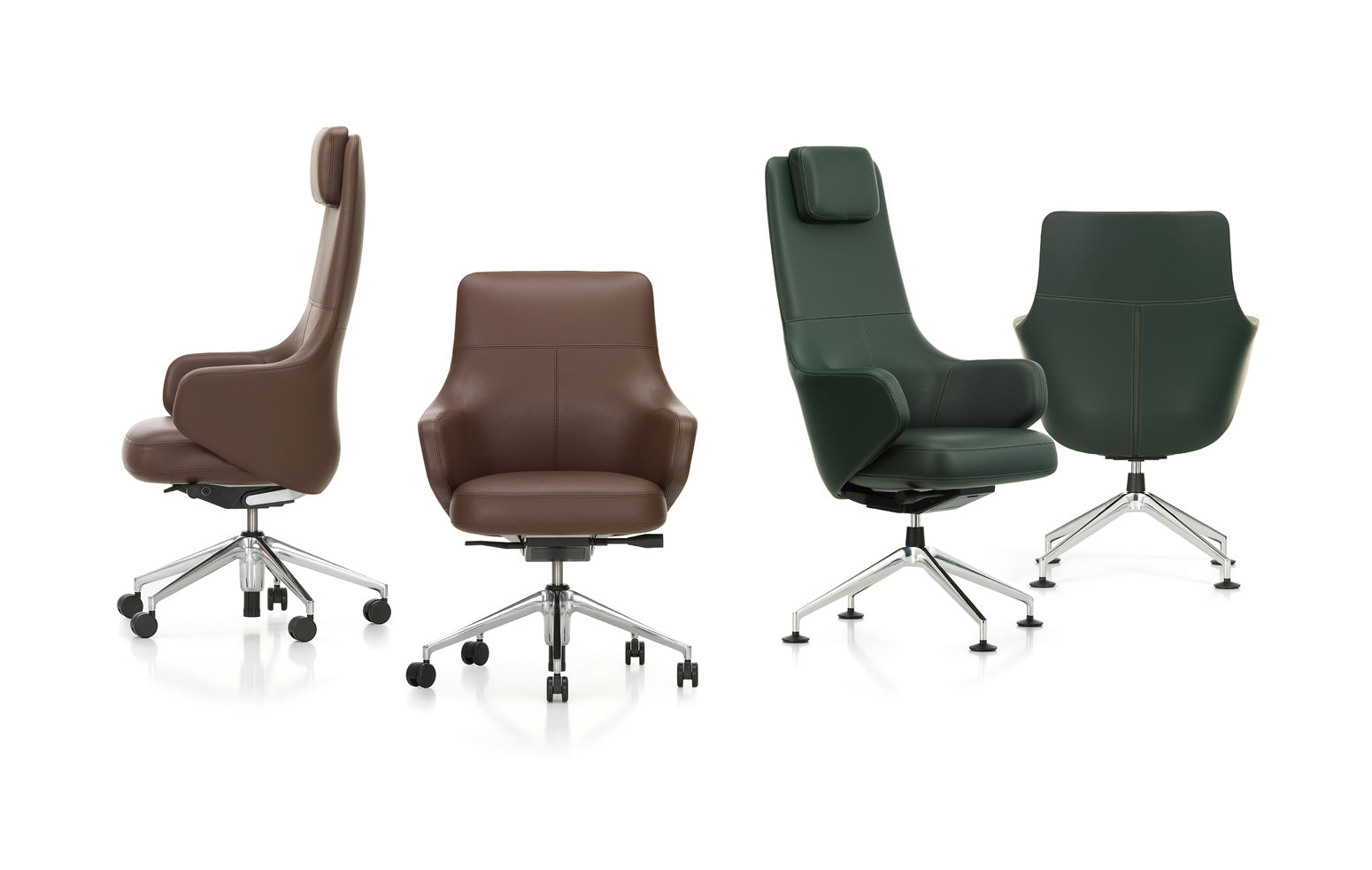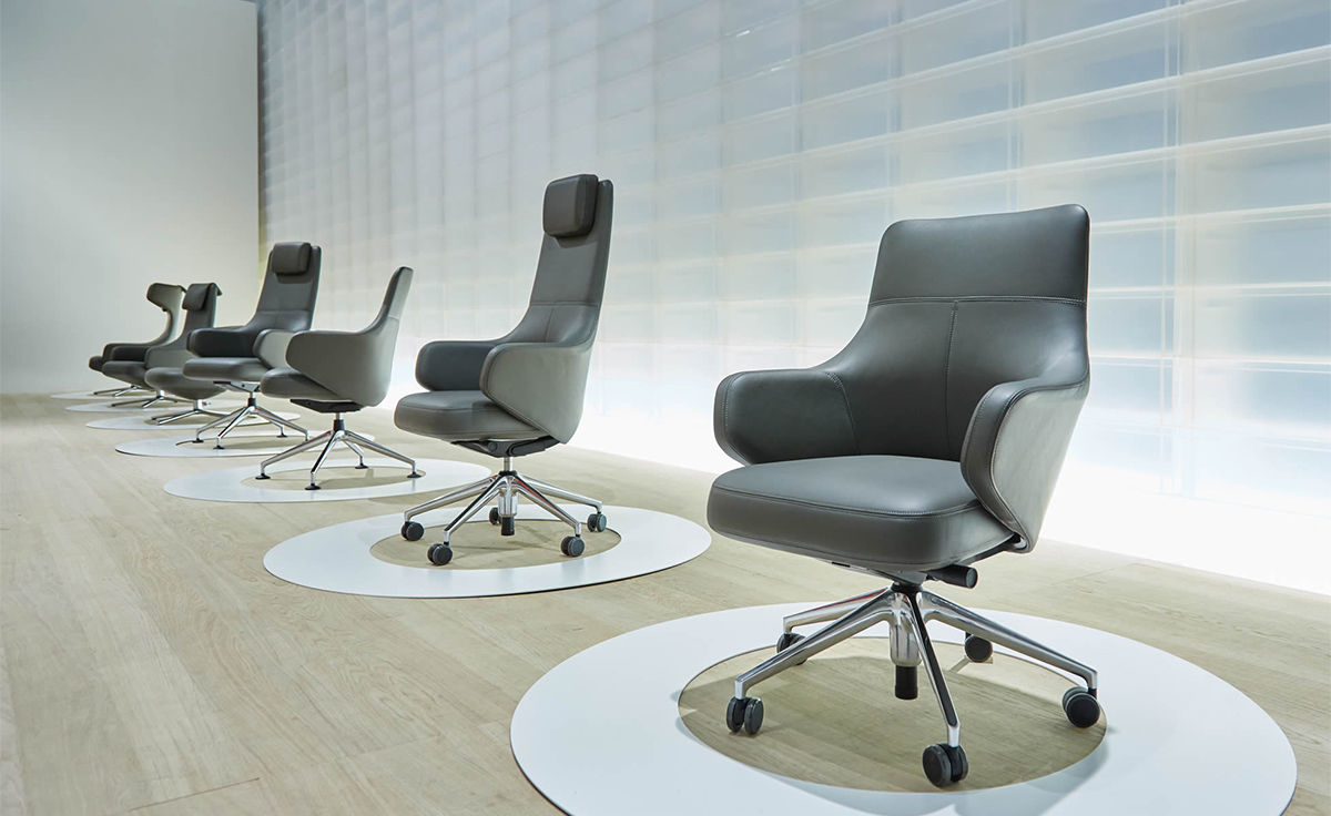 Grand Executive椅子有不同的版本:Grand Executive Lowback以其靠背为特色,Grand Executive Conference为访客座位和会议座位提供了先进的解决方案。与Grand Repos和Repos一起,它们形成了一系列椅子,为办公室和会议室以及大厅,等候区和接待区提供统一的外观。