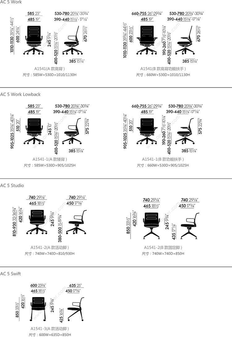 AC 5 Work 系列尺寸/示意图
