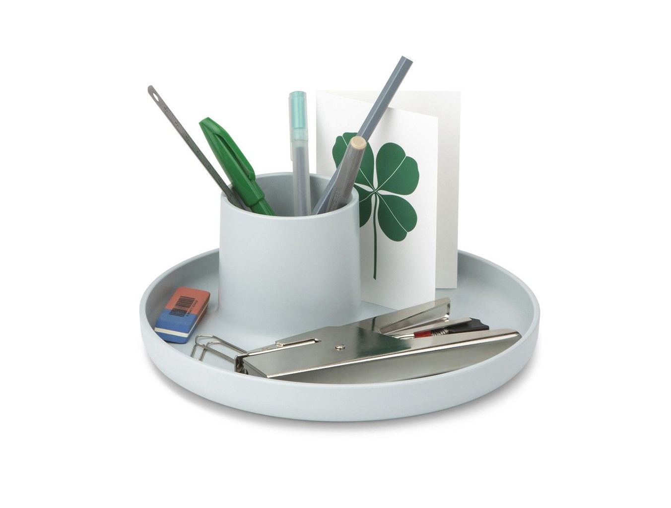 O-Tidy是一种实用的多功能存储容器。 该设计不仅提供托盘和杯子功能,而且还将其简单的形状组合成一个新的,完美比例的物体。