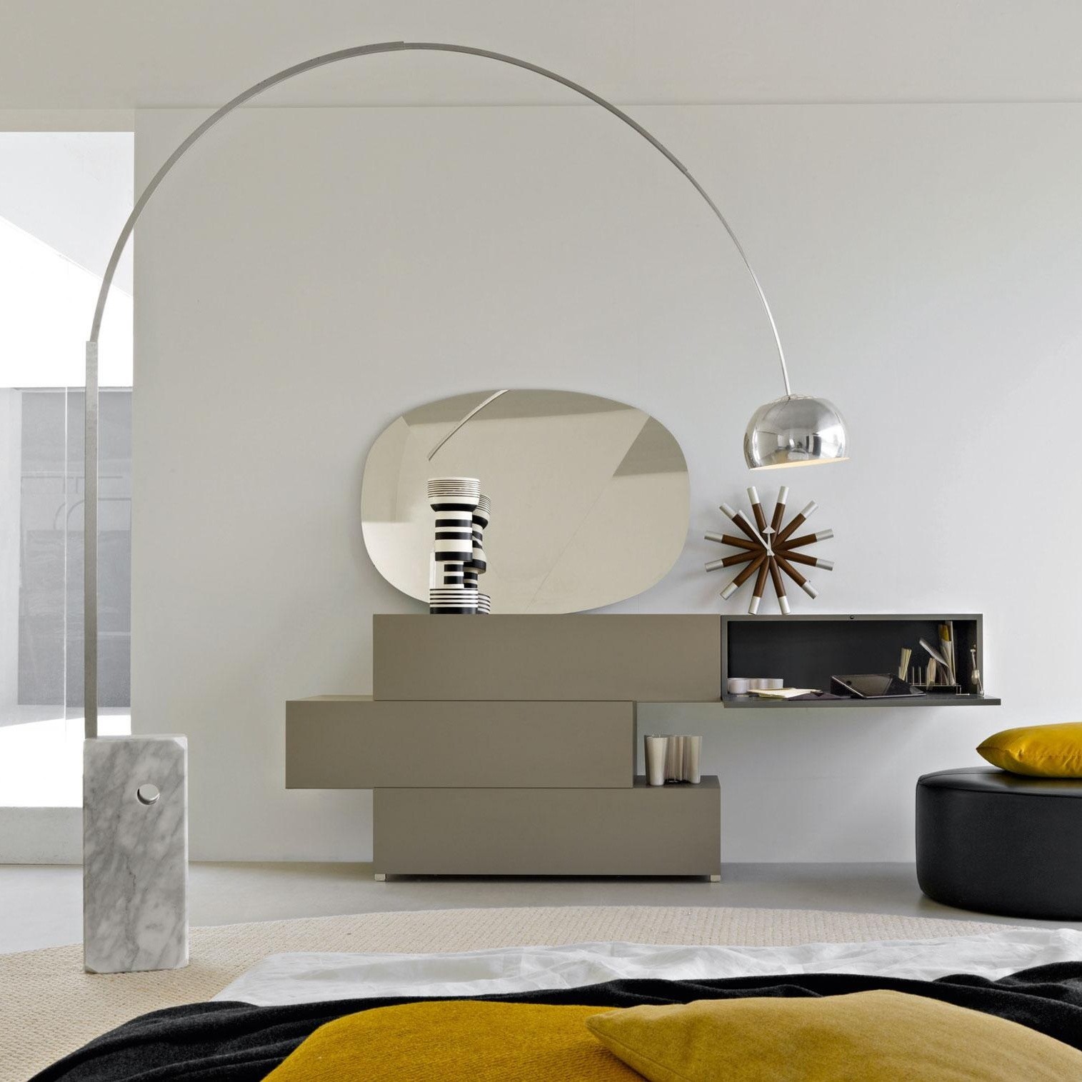 信仰进步和日益增长的经济繁荣是1950年左右美国生活方式的核心方面。一切似乎都有可能,人们努力做到“现代”。 为了将现代设计融入美国家庭,乔治·尼尔森构思了各种日常用品:灯具,钟表和其他家居饰品。 直到20世纪70年代,尼尔森办公室为家庭创造了许多不同的物品,包括泡泡灯和球钟,它们成为了本世纪中期现代设计的象征。