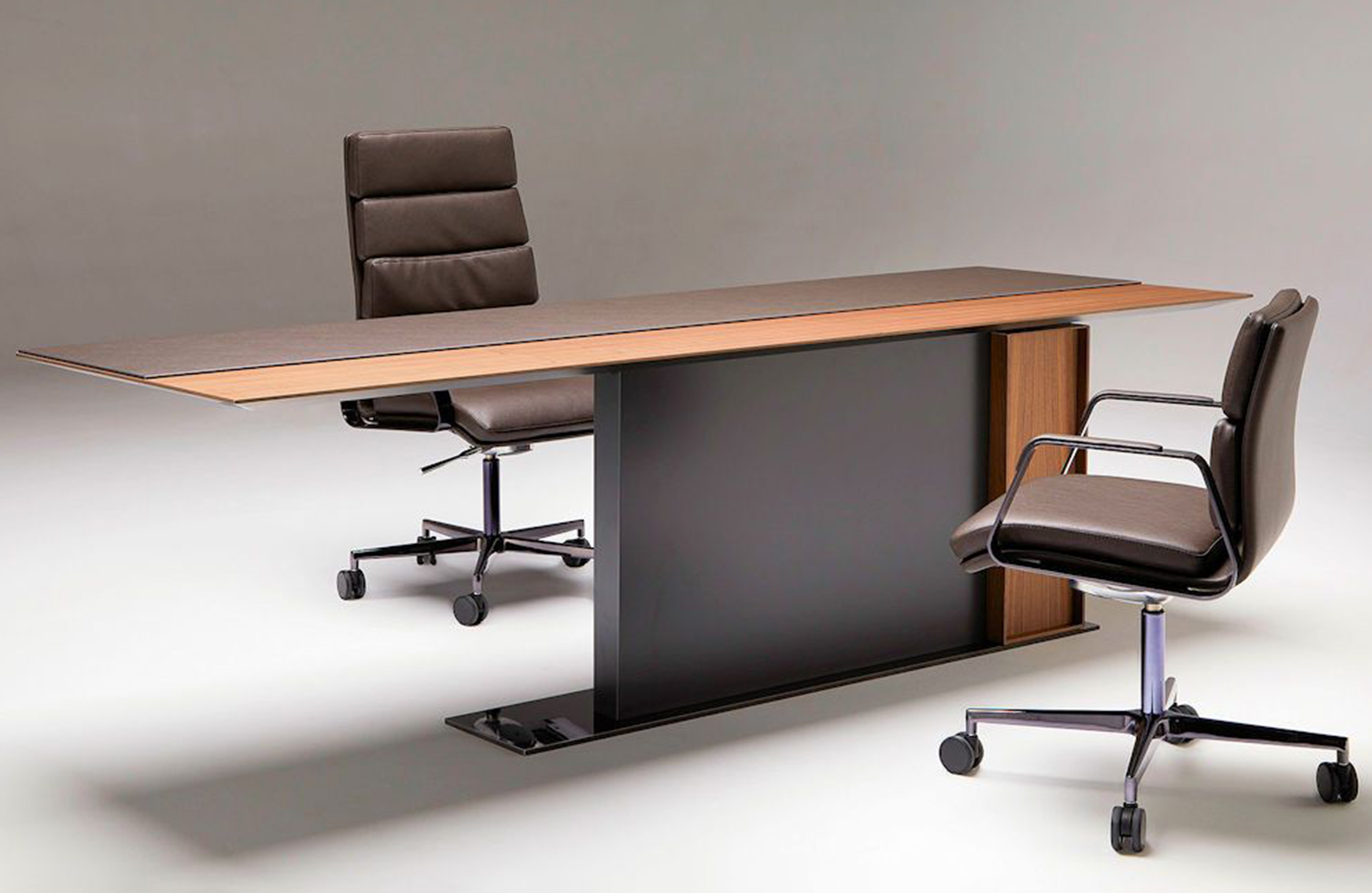 LA MESA行政办公桌采用珍贵的中长木制前面板,融合了经典和通风的外形。