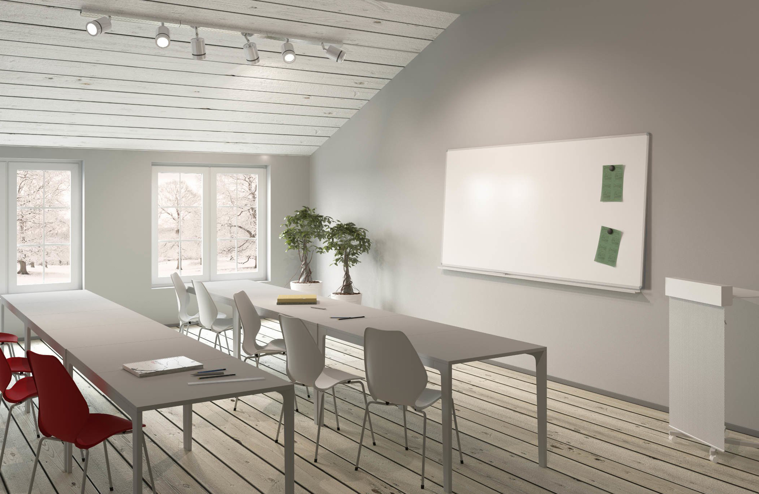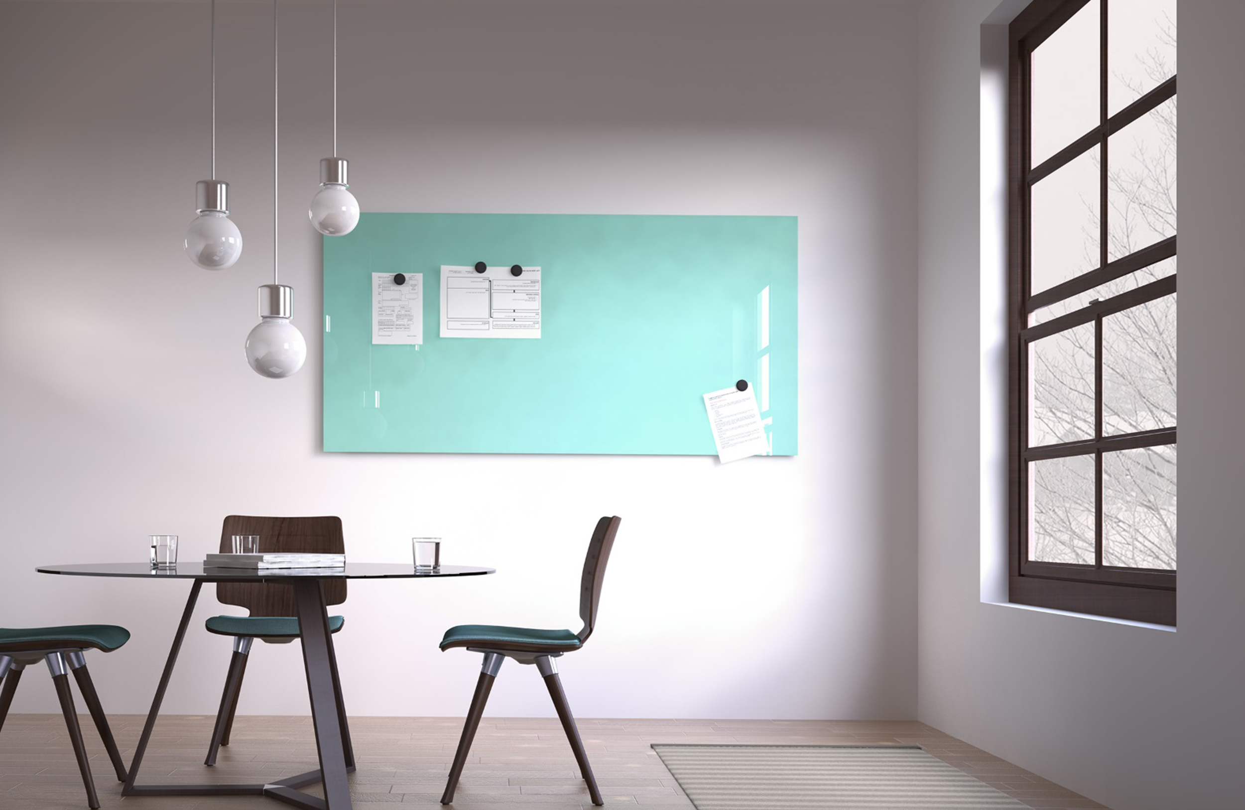 MagVision是一款高品质的移动白板,具有磁性E3-珐琅表面(NCS S 1002 G50Y),带有银色或白色阳极氧化铝框架和圆角塑料。有不同尺寸可供选择。背面覆盖有厚度为0.3毫米的铝板。白板有一个隐藏的悬挂,也有一个带轮子的支架,因此它是移动的。