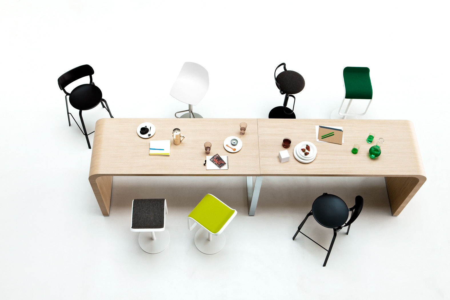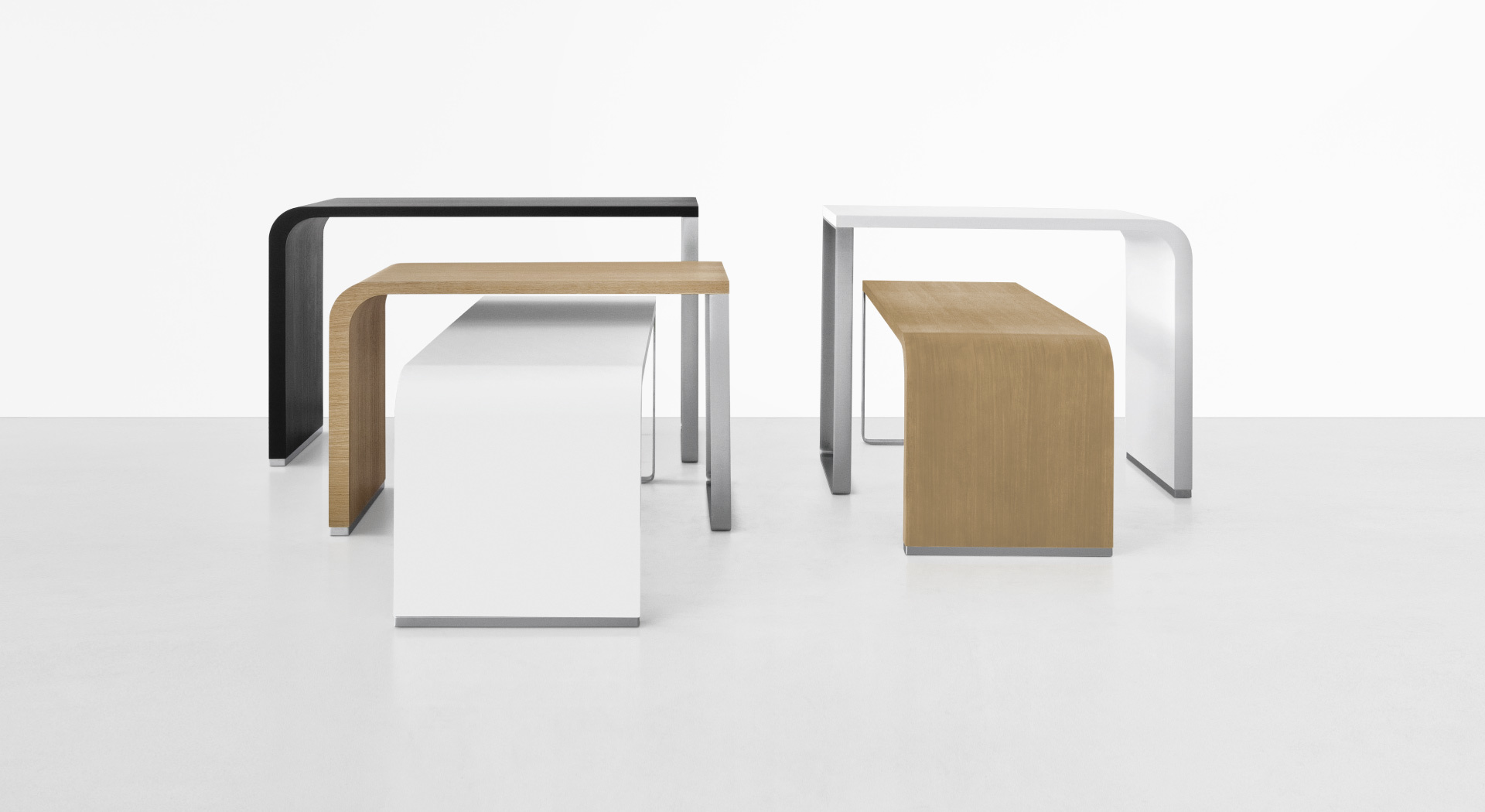 两个世界,两个“时刻”聚集在一起的传统早午餐。一方面,一个木头顶部下降在一个曲线到地板,轻轻地改变厚度,另一方面,一个严格的金属底座。由于其高度原始的不对称效果,这张桌子可以自由排列,高度相交和开放的方向,一个恒星。