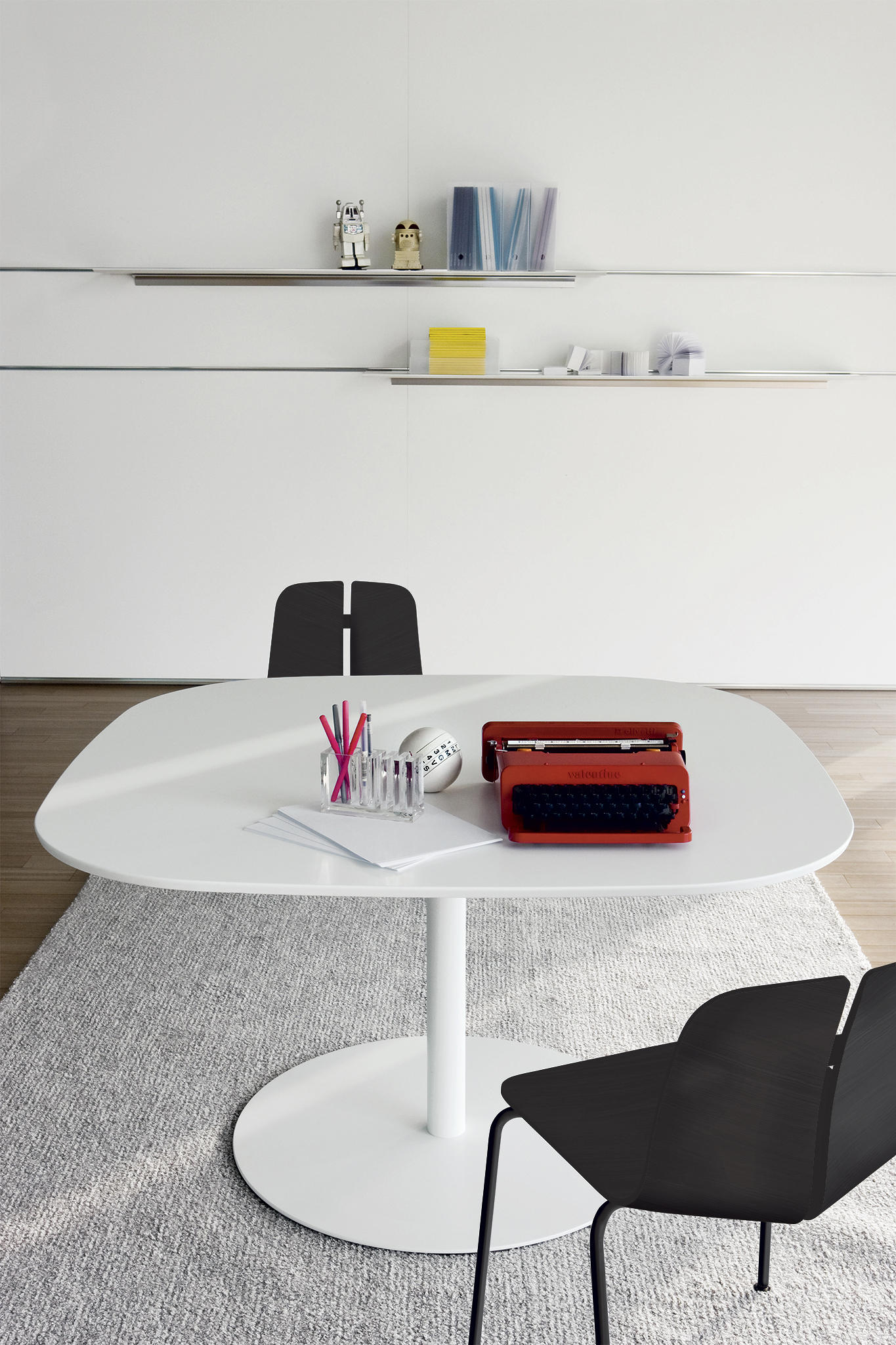 RONDO table和谐地发展了一个极简主义的主题,并为桌面提供了核心支持。它的轮廓是是圆形的,也是正方形的。其可调节的高度和颜色选择,从严格的黑白和温暖的木材吸引力,创造了一系列的解决方案提供纯粹的优雅。