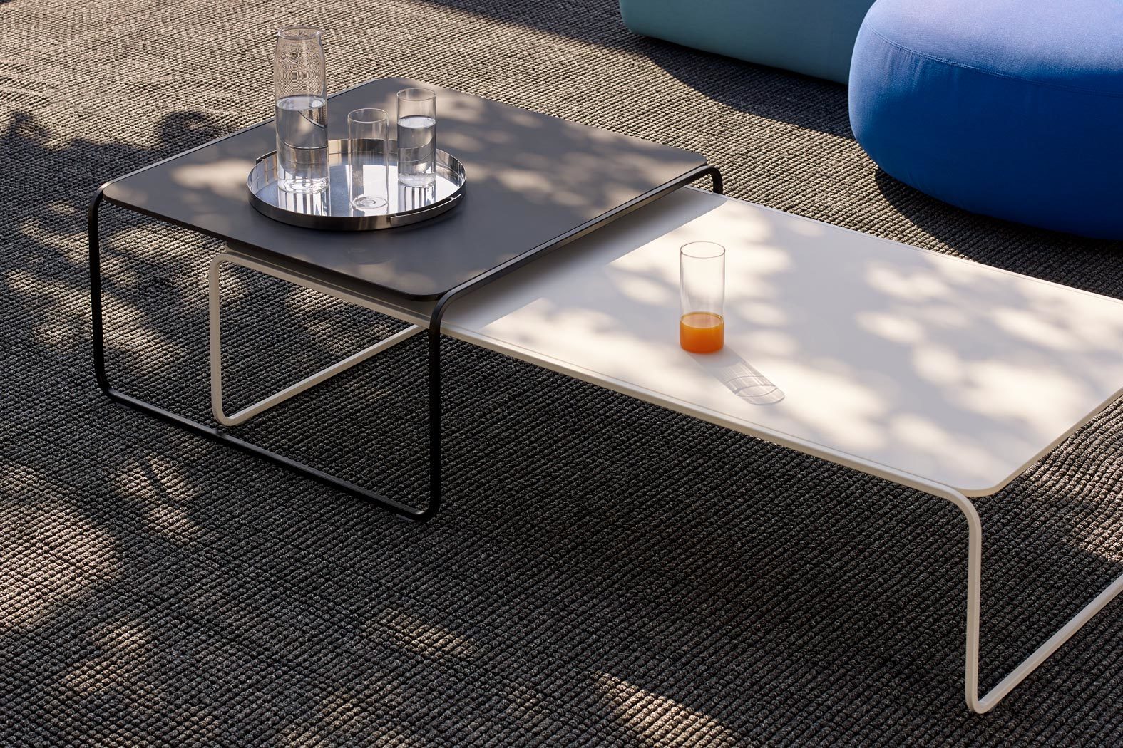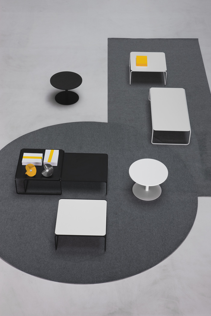 金属管状框架,作为一条丝带,定义和发展了圆型结构的小桌子。因此,金属管状结构,就像丝带一样轻,定义和发展了圆桌的圆形框架。它有两种高度,形状和颜色可以重叠。足以创造一个对话。