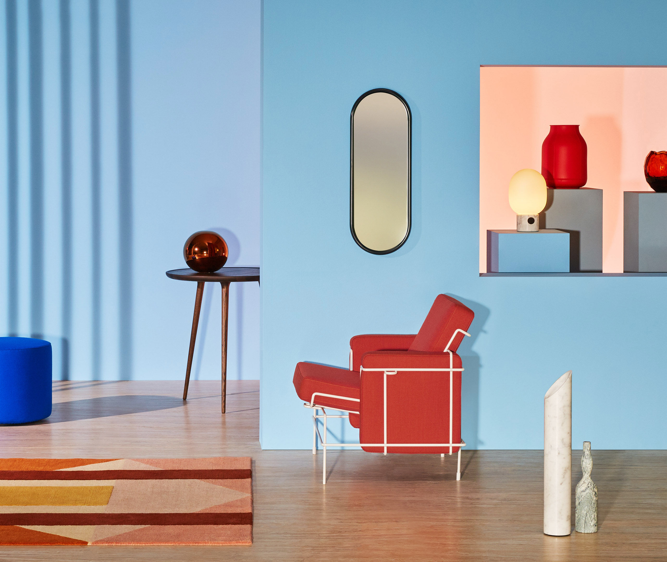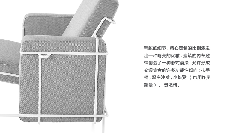 由Konstantin Grcic为Magis设计,休闲家具的交通系列提供了对比的研究:硬和软,线性和体积,俏皮和复杂。 钢制杆架具有平行和交叉线,为每个部件带来能量。 靠垫块,整齐地用布料或皮革装饰,传达出舒适和平静的感觉。
