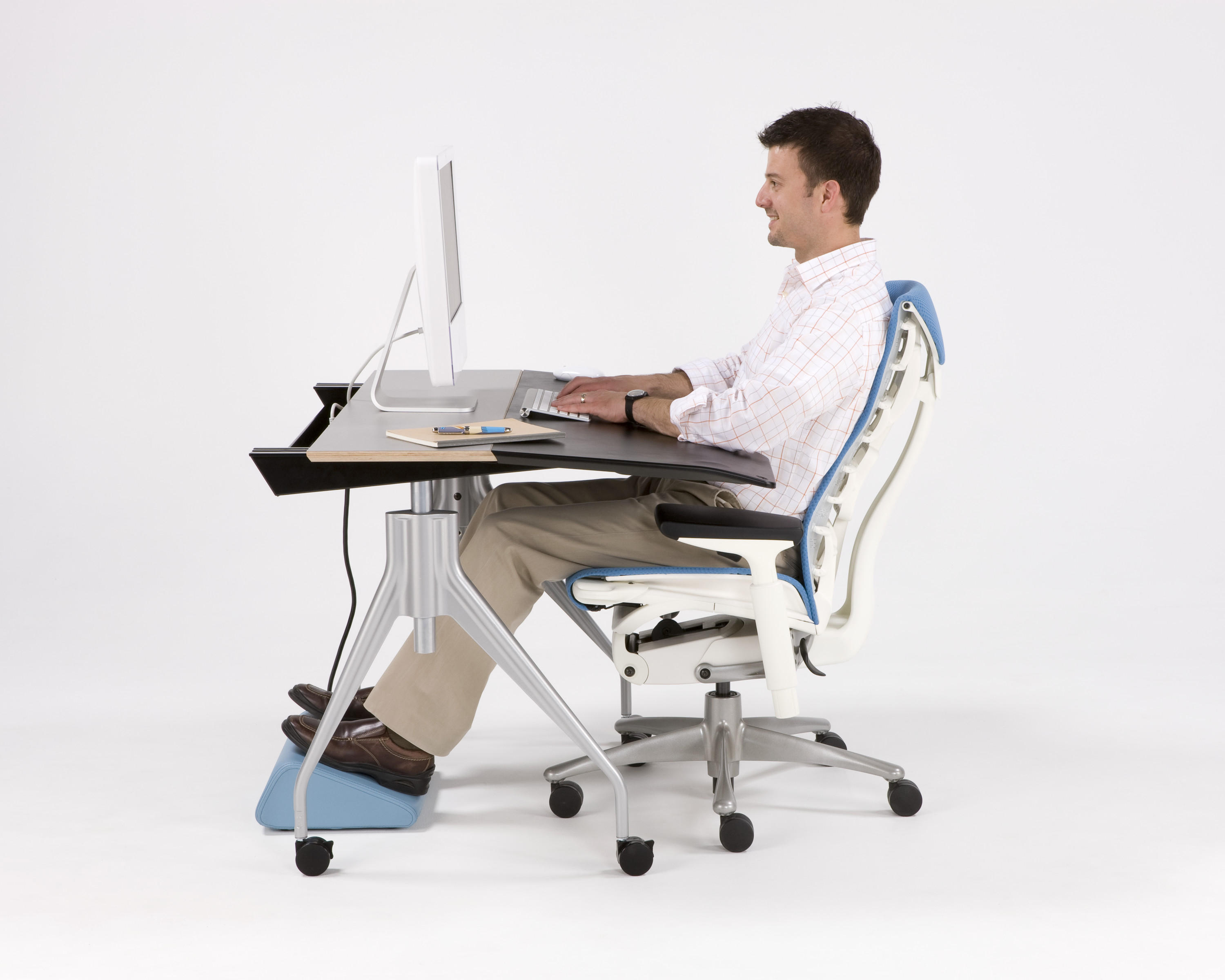 人会动,座椅也会动,为什么桌子就不能动呢?Envelop有着灵活的工作台面,在工作时可以滑动将您包围,是首款帮助您、座椅、工作台面和您的技术协调工作的办公桌。可使用标准销轴高度调节或坐姿-站姿高度可调桌腿,Envelop可以全面支持健康的坐姿与站姿。