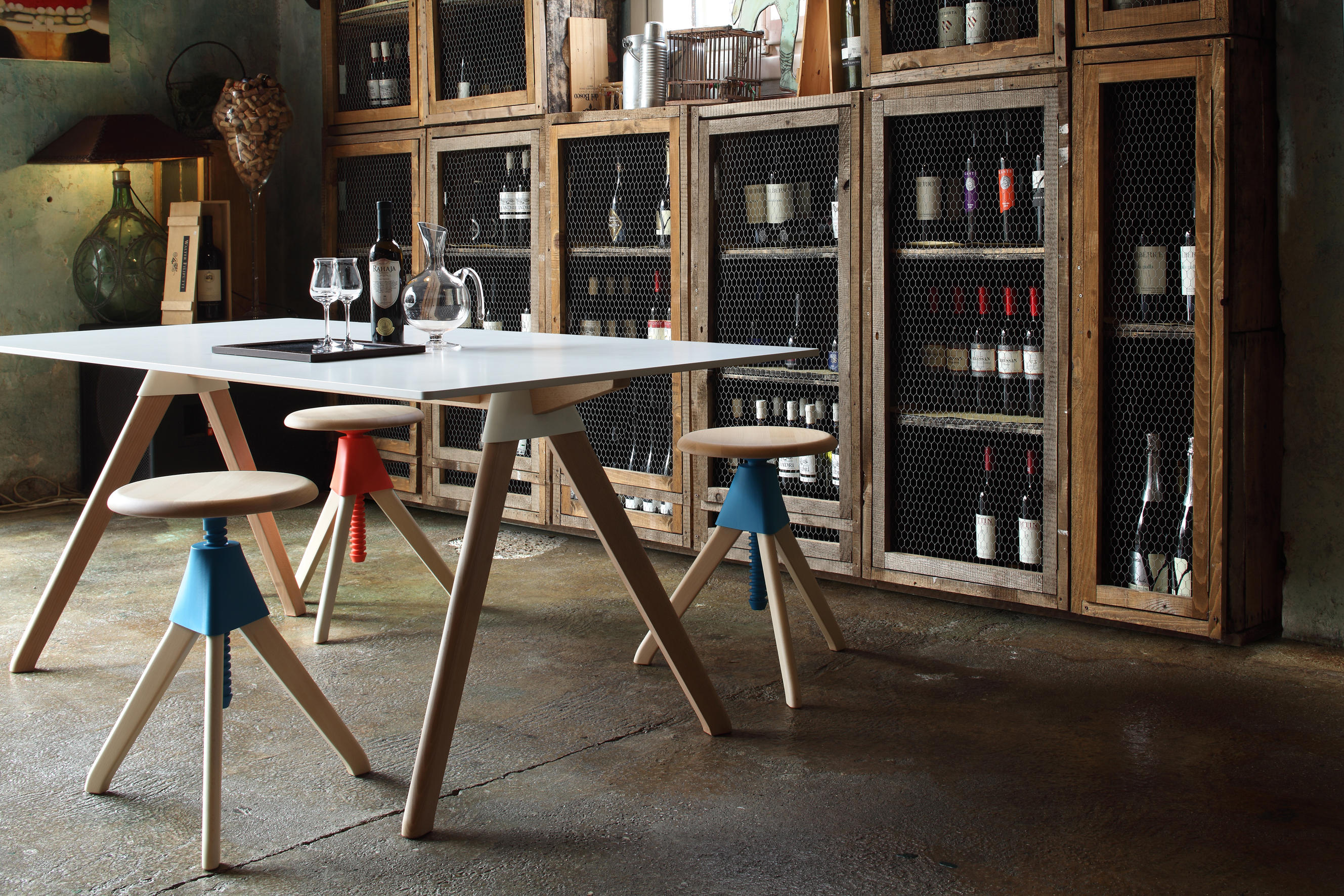 Topsy可调高度桌是Konstantin Grcic系列野生束系列的一部分。这三条腿的桌子是由实心的山毛榉木材和机械塑料零件制成.由于它的平稳运行机制,该桌易于调整,便于在各种场合中使用。Topsy是在各种环境工作,娱乐和私人的多功能选择。它可以作为一个可调节的桌子在一个角落,作为一个多用途的给餐厅使用,或作为儿童在幼儿园的桌子。