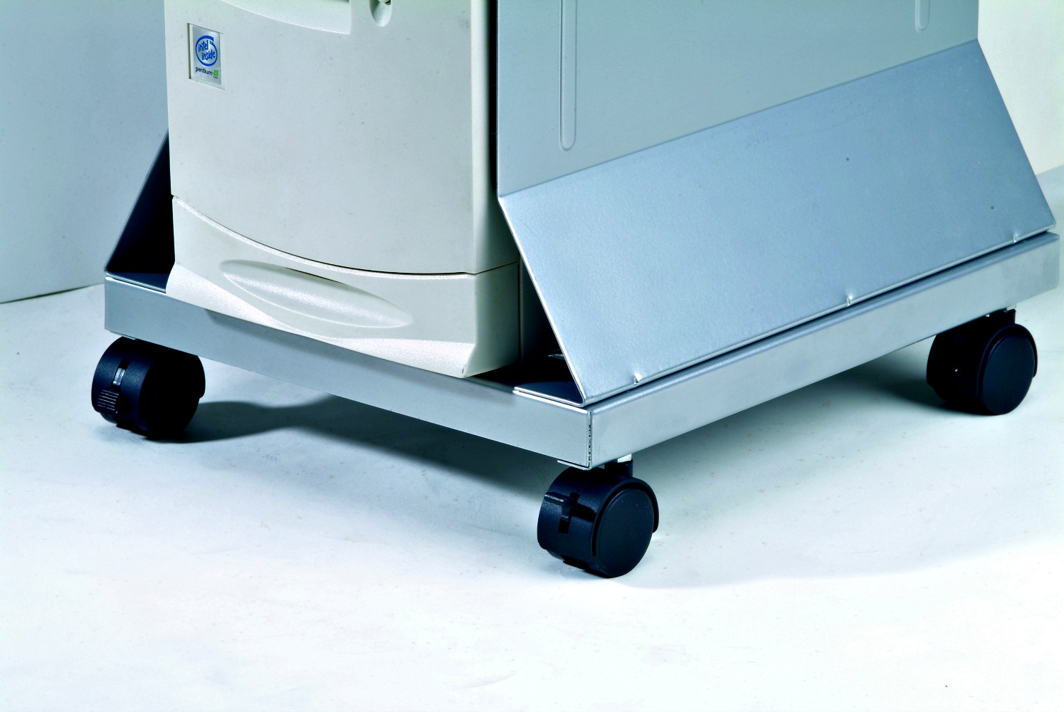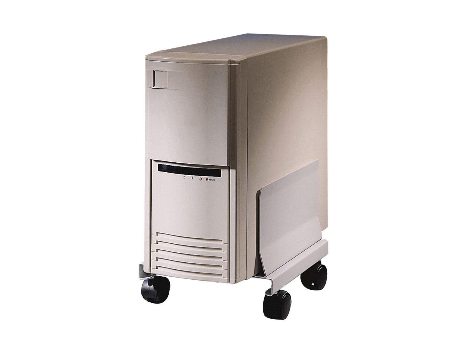 持有人从工作台上取下CPU并使其移动。 它有脚轮,所以它可以滚动到任何地方。 并且,它可以随时移动,以便轻松访问电缆连接。