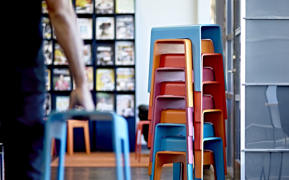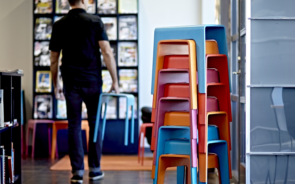 宾博开始作为一个丰富多彩的素描,小凳子堆叠,在后面我们喜欢这个草图,彼得·勃兰特(Peter Brandt)被委托进一步发展他的想法。结果是Bimbo,多年来赢得了许多奖项,已经成长为一个凳子和小桌子家族。
