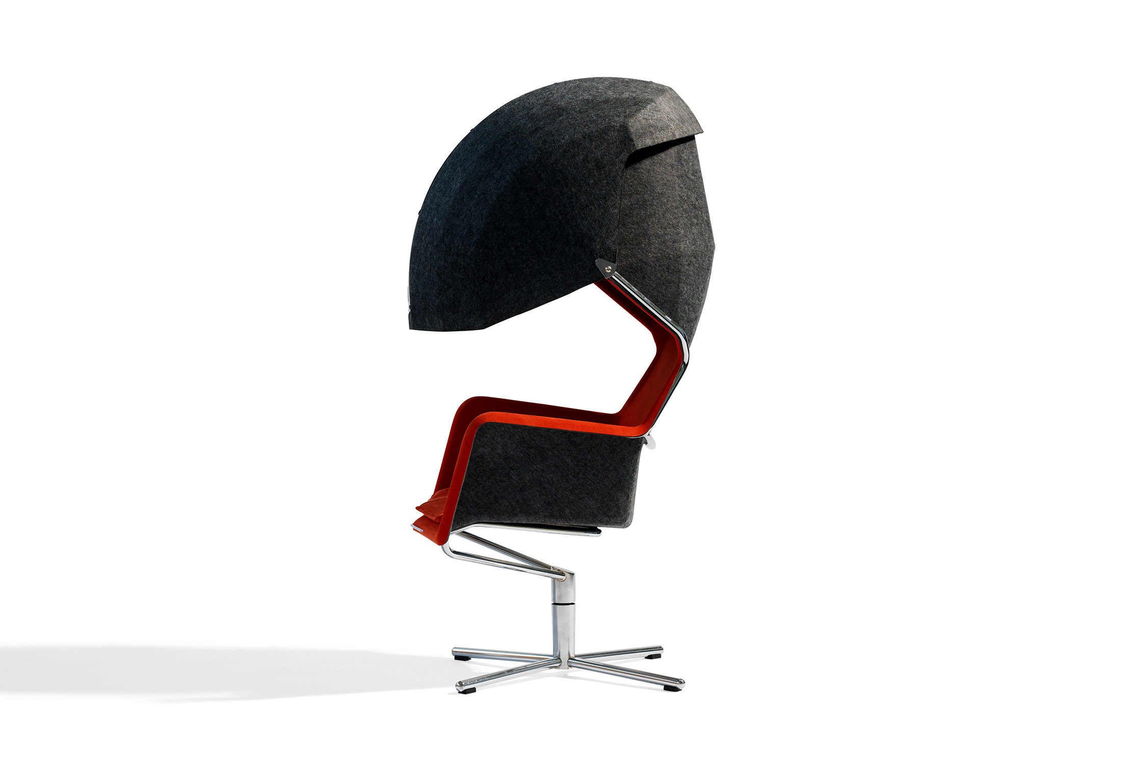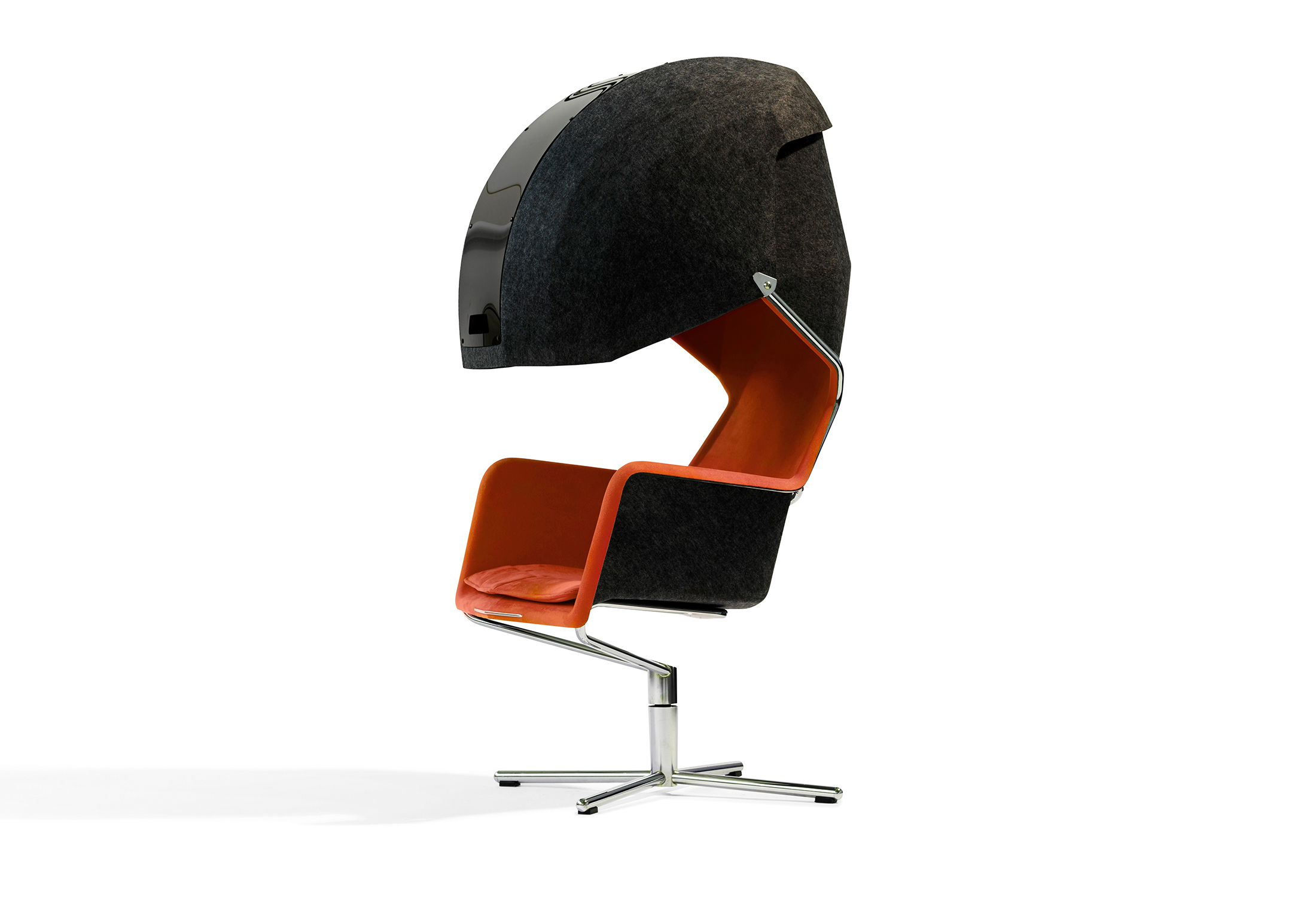 Peekaboo -Peekaboo是一种现代悬臂式翼椅,具有formfelt的织物或皮革层压座椅壳。由于formfelt的特殊特性,座椅壳具有吸音特性。Peekaboo可用于多种内部装饰中它们是机场,休息室和候机区。Peekaboo可用于创建一个小的绿洲,一个自己的小房间。一个私人通话或打个na的地方。模压成型的座椅壳可容纳100人%聚酯纤维。外壳内部可皮革或织物层压。外部可层压在织物上。带有机玻璃面板的成型毡罩。镀铬管状钢底架。乙缩醛塑料支脚。座椅高度380 mm,总高度1295毫米,总宽度700毫米,座深485毫米,总深度700毫米。