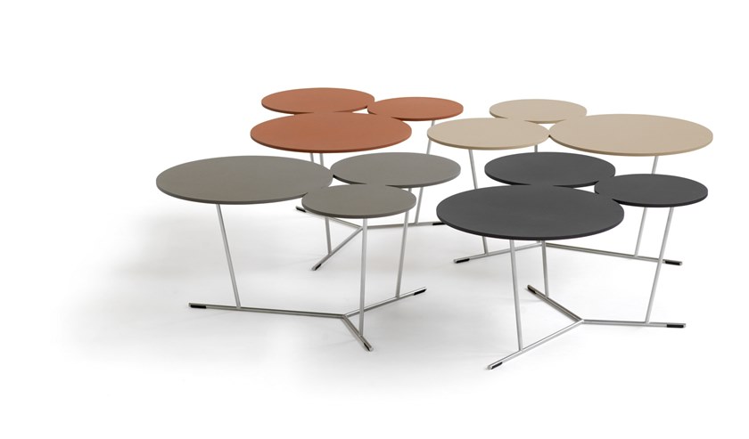 气泡的俏皮形状打破了严格和方形的环境。具有三种不同大小的程式化气泡的装饰性图形桌子。如果您只想要更多,可以对其进行调整。它们会渗入房间。哑光烤漆桌面采用激光切割铝制成,并由不锈钢结构支撑。有多种颜色可供选择,从黑白到沙子,赤陶,无烟煤和粘土。可在室内和室外使用。