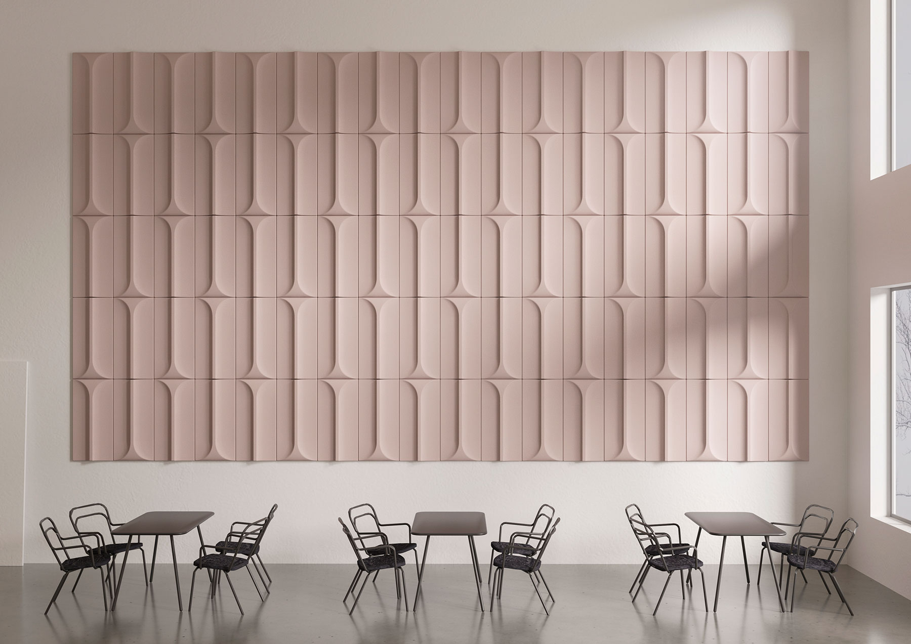石材设计带来了第三个声音吸收到BLA站 弧由斗兽场在罗马商场的启发,可以在许多垂直和水平的配置中使用该面板刺激性偏转声音浮雕吸收声波,弧形墙规划设置在我们的网站上公布,并根据需要与声事实提供关于吸音值的信息可以结合起来。