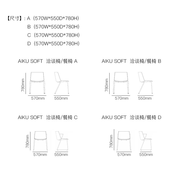 AIKU SOFT 洽谈椅/餐椅 系列尺寸/示意图