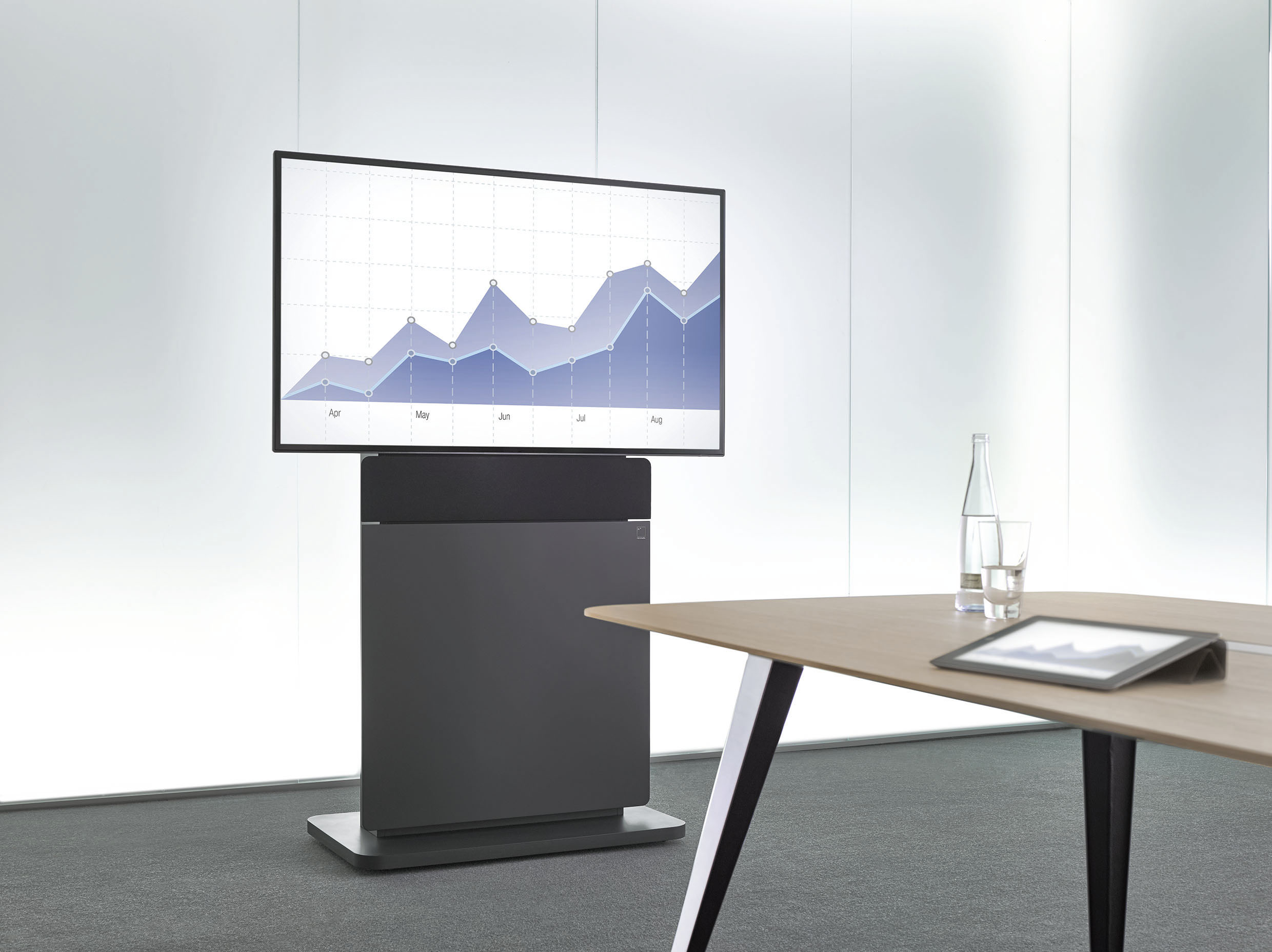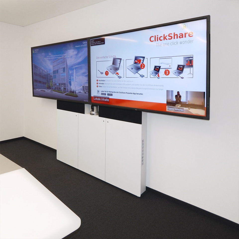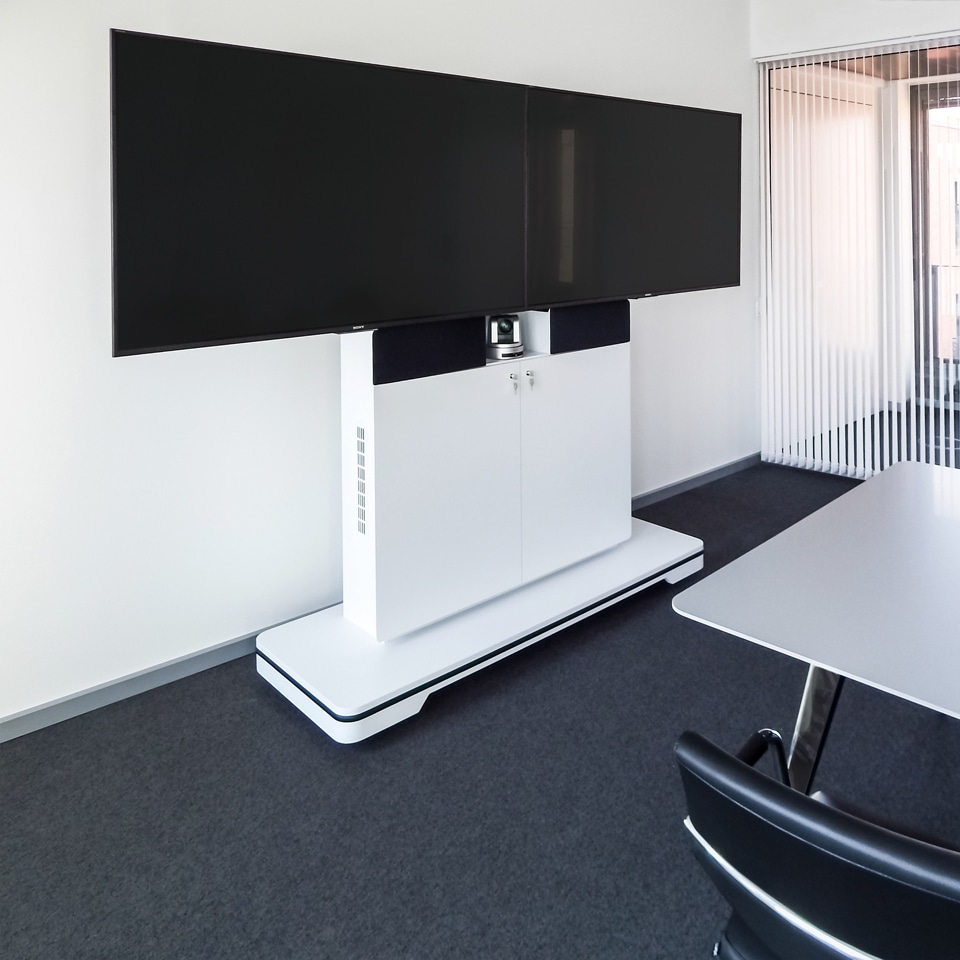 纤细的移动多媒体墙W8凭借着高功能性和灵活性的设计令人喜爱。集成的插头和播放控制系统提供了一个自由的多媒体方案,改变了用户的会议自由性。多种屏幕尺寸可供选择,适合于各种大小不同的会议室要求。