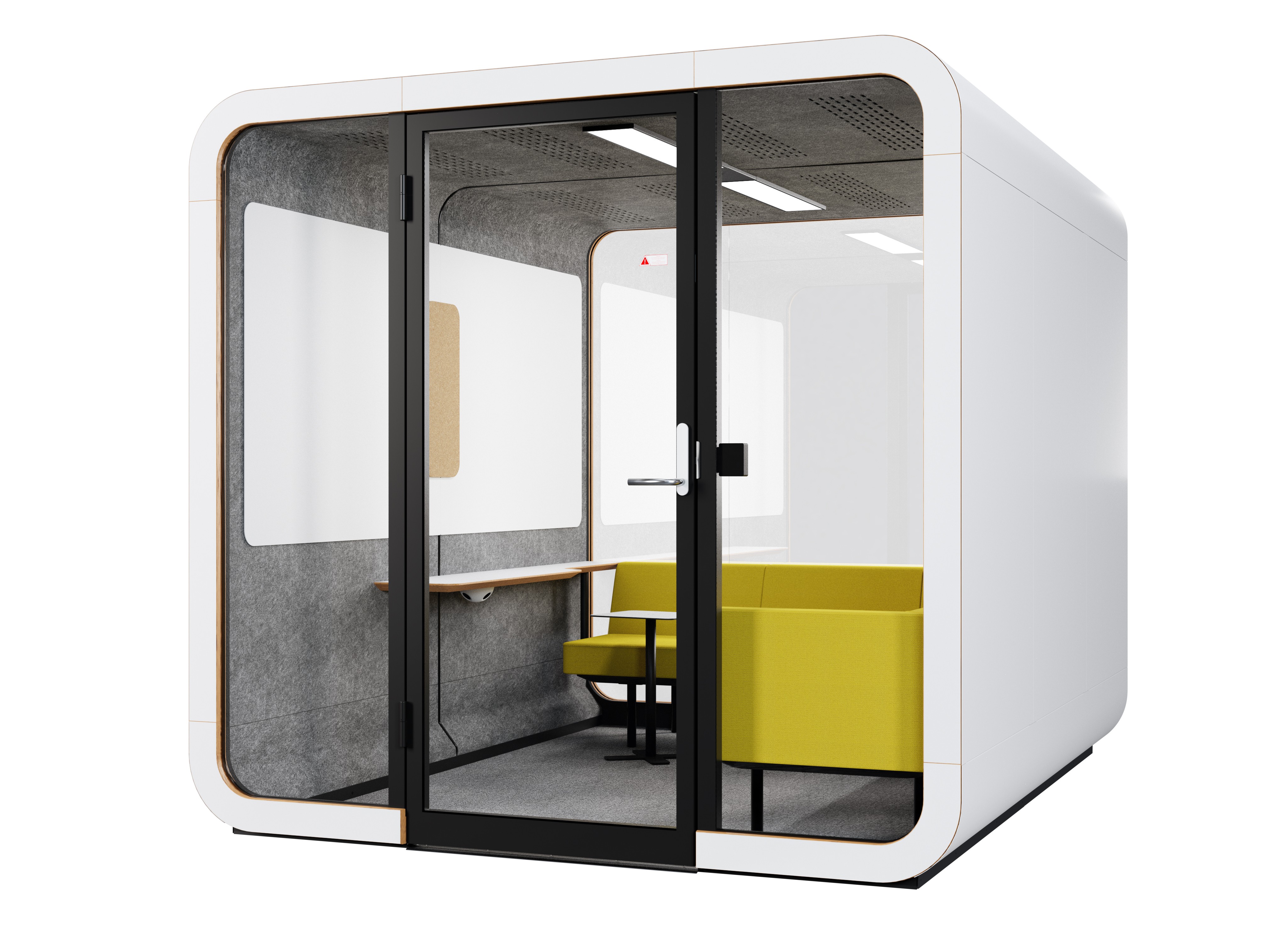Framery 2Q是会议荚概念化打击缺乏隐私在开放式的办公楼层平面图。可同时容纳四到六人,Framery 2Q为用户提供了一个多功能的工作场所提供的私密性和舒适性意识高涨。 Framery 2Q共有三种家具配置,因此客户可以定制产品以满足其空间的特定需求。具有两个高度选项的会议桌是笔记本电脑使用或车间的最佳选择。客户还可以选择没有家具的吊舱,而无需使用家具他们刚刚选择了适合自己的装备。今年初推出的第三种室内装饰选项是定制的L形沙发,旨在提供最佳的舒适度。在工作日或社交区域退缩。客户可以通过在沙发对面的墙上安装显示屏来增加吊舱的功能。其他选项包括两个白板和轻巧的独立式浮动桌子,可用于更符合人体工程学的工作空间。高品质的材料和表面处理使Framery 2Q是办公室中时尚却引人注目的焦点。