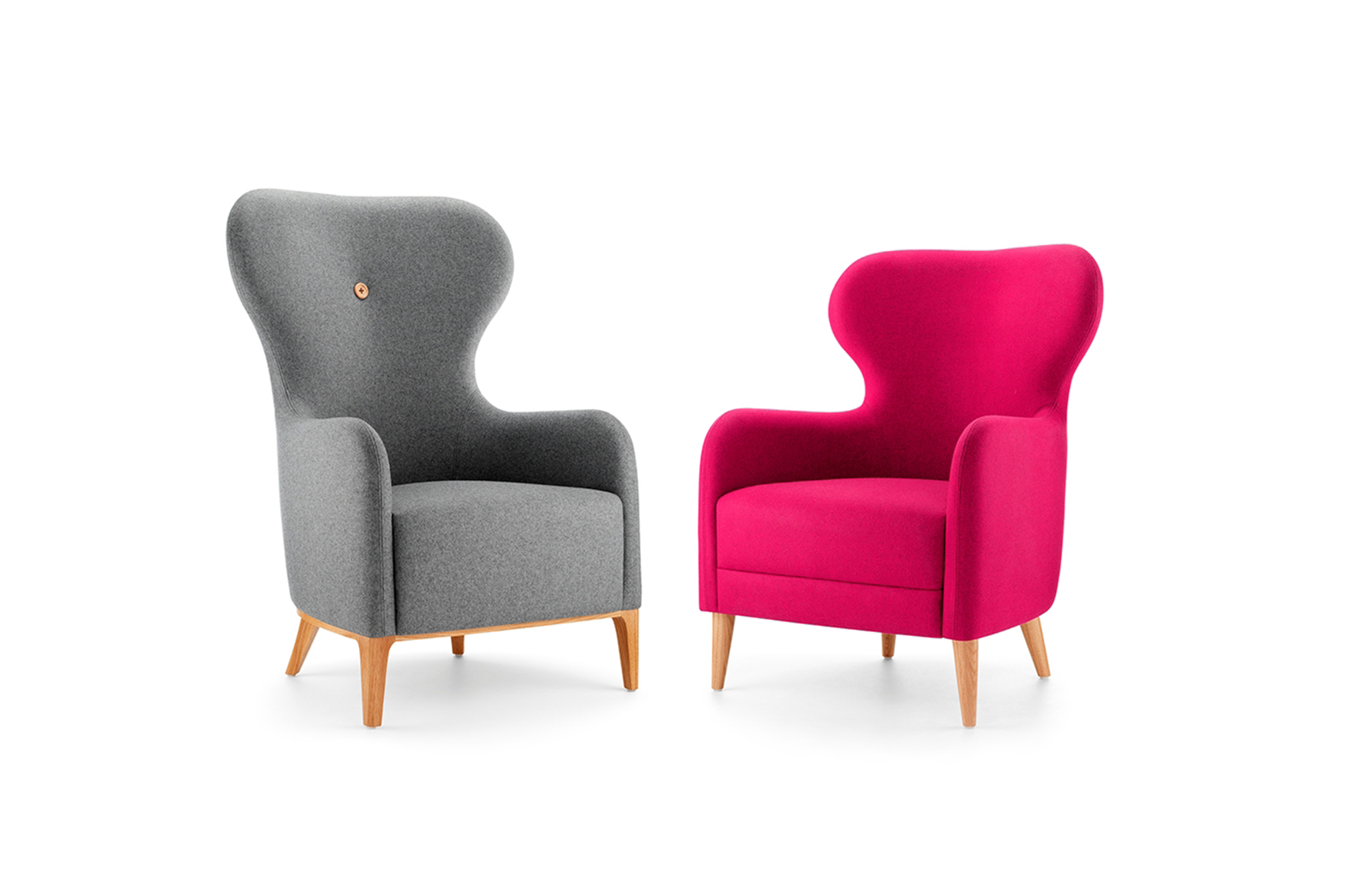 高背版提供了一种阳刚的感觉,在框架、全座椅和木质按钮的框架下,低靠背的椅子配有宽松的靠垫、边框、布料按钮和腿部细节。