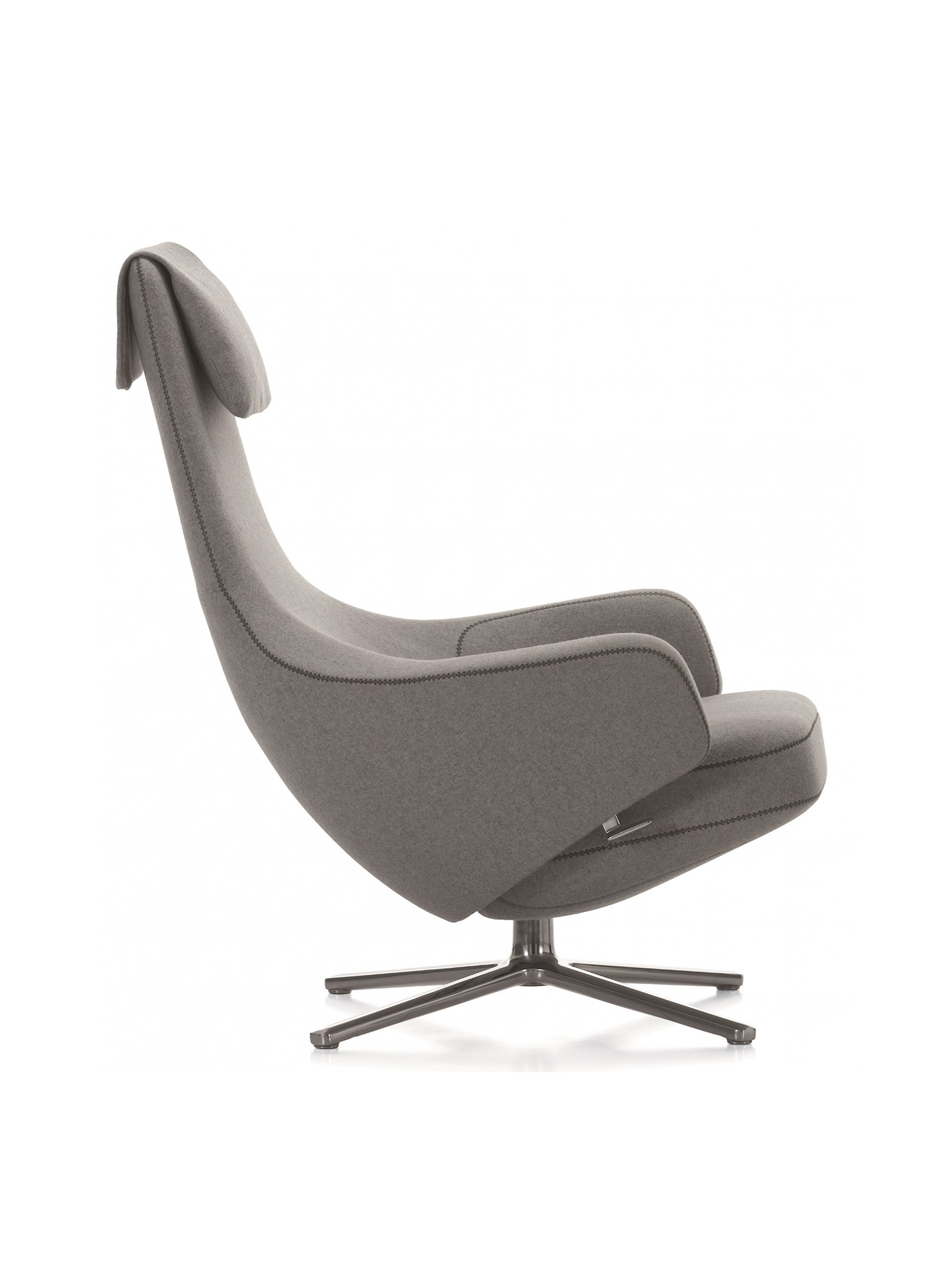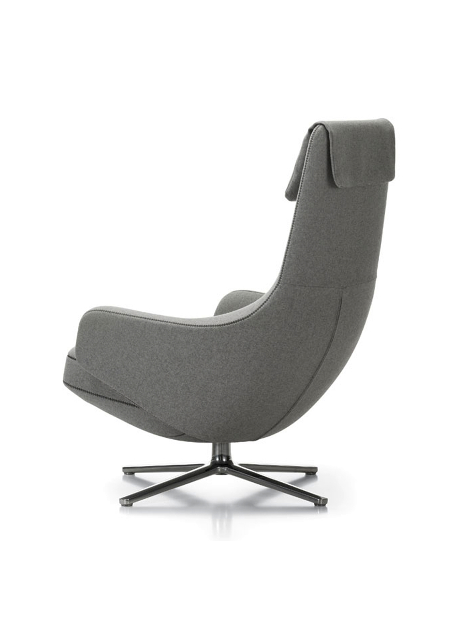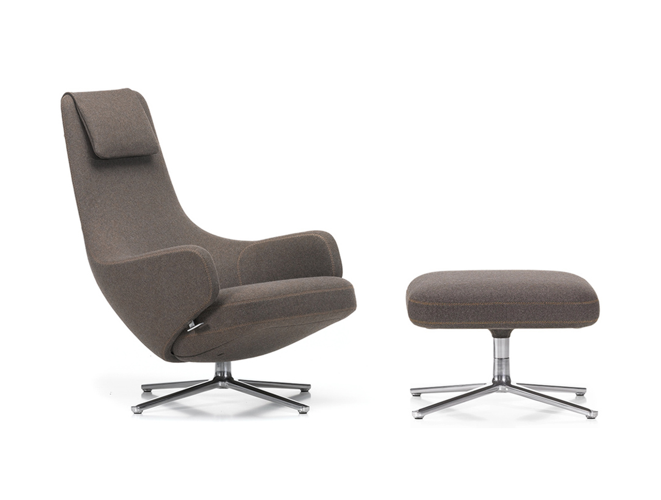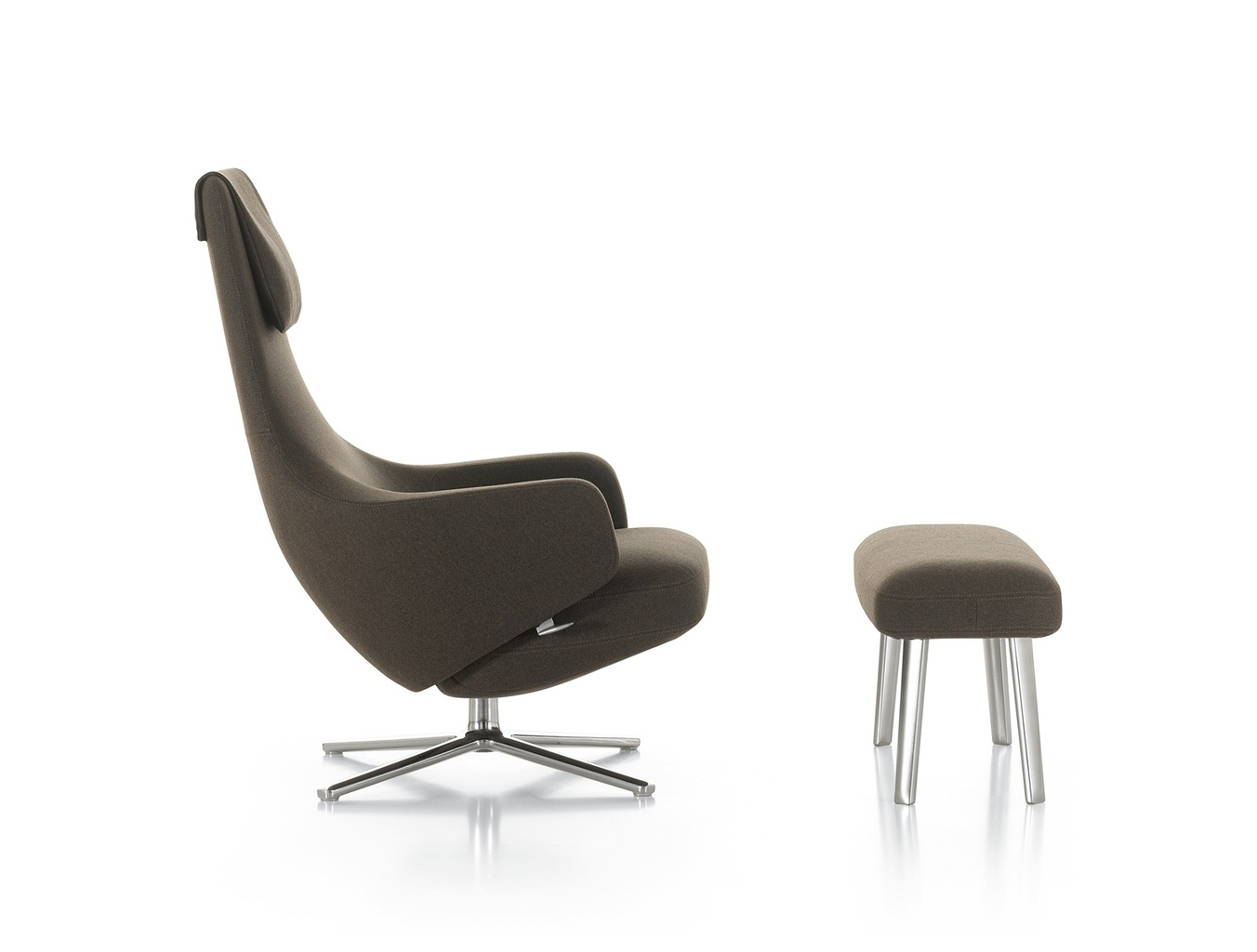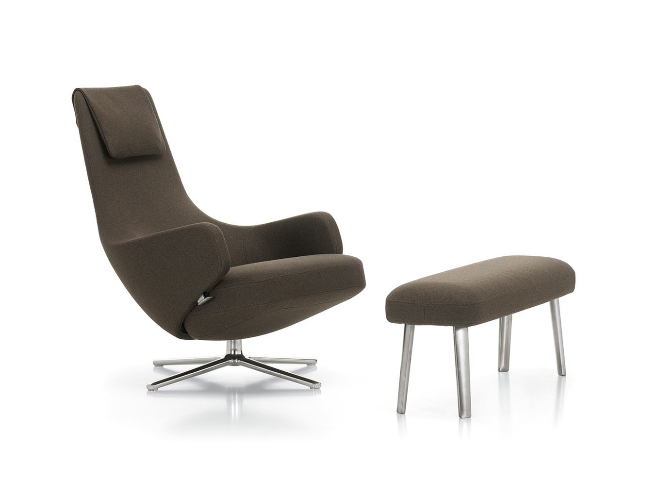 "repos lounge chair and ottoman(repos休闲椅&脚踏)由设计大师Antonio Citterio所设计。repos系列休闲椅采用钢制铝合金脚架、聚氨酯海绵填充、高级布艺扪面,可随意调整坐姿和高度,也可以放平躺,配上舒适的羽毛衬垫,无论阅读或者休憩,都非常舒服,符合人体工学,高档舒适,是办公,会议的理想选择。意大利设计师和建筑师 Antonio Citterio赋予了这边椅子永恒的优雅气质与无与伦比的舒适,是当代设计的经典,无论用在办公、商业、家庭都是非常高贵大气的。