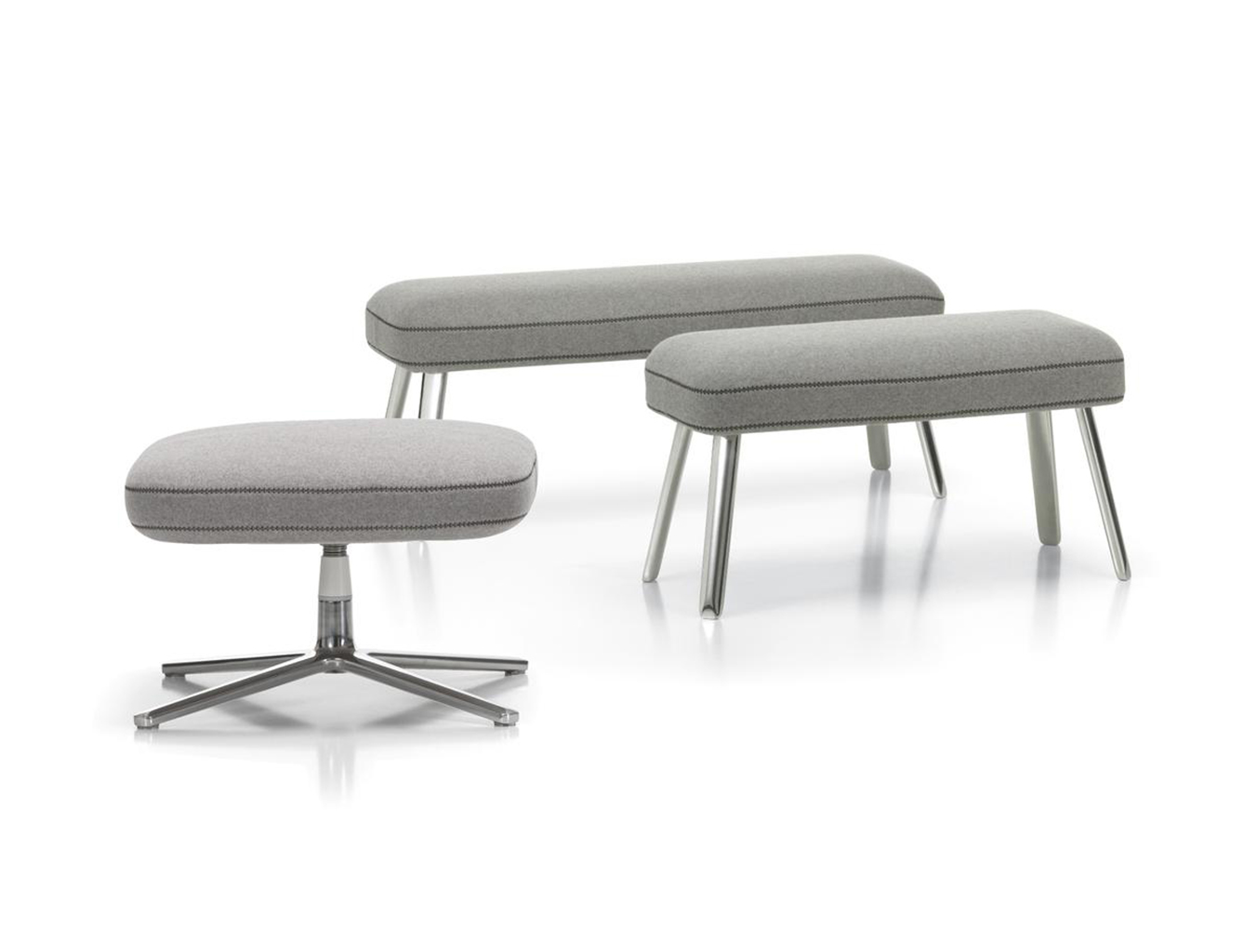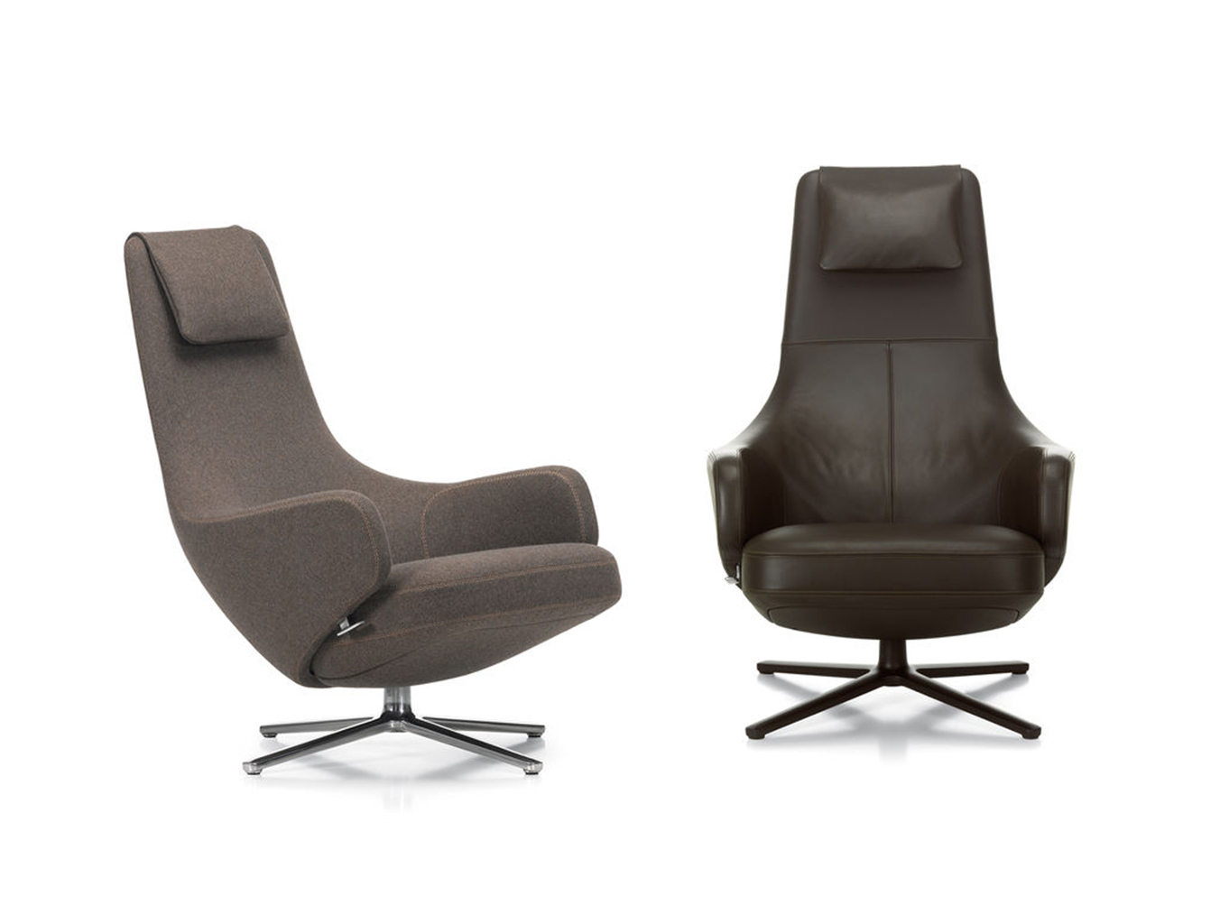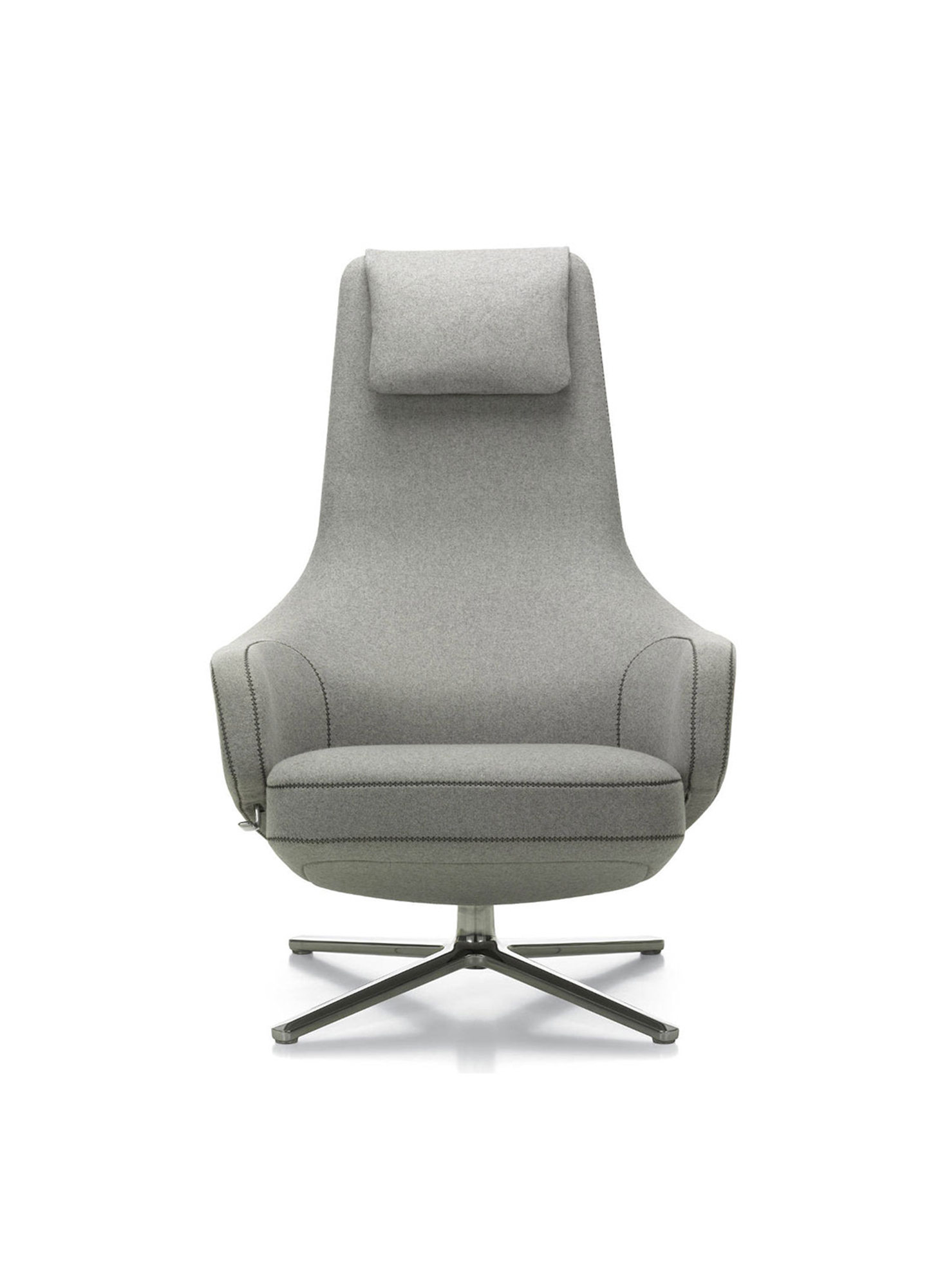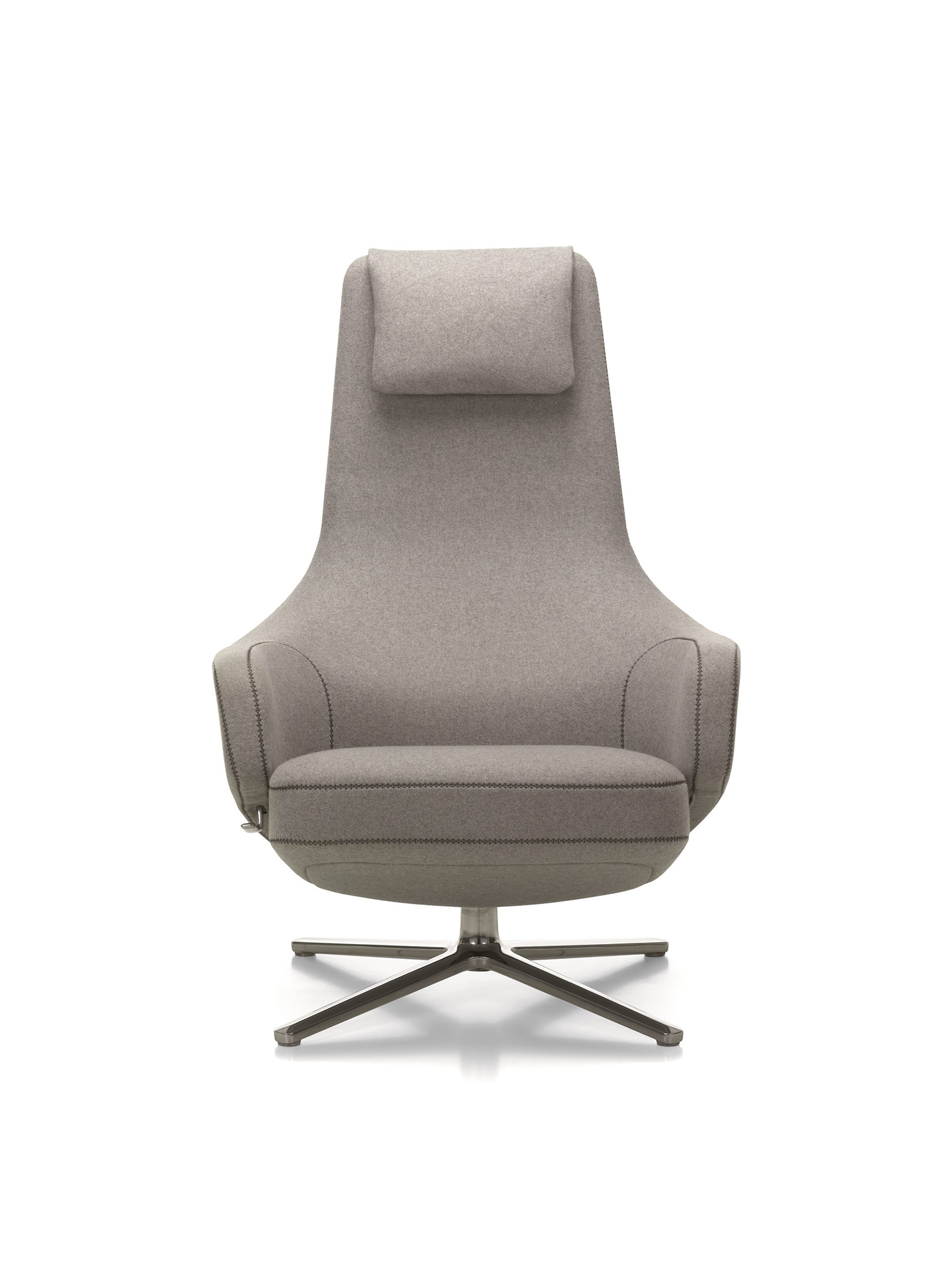 "repos lounge chair and ottoman(repos休闲椅&脚踏)由设计大师Antonio Citterio所设计。repos系列休闲椅采用钢制铝合金脚架、聚氨酯海绵填充、高级布艺扪面,可随意调整坐姿和高度,也可以放平躺,配上舒适的羽毛衬垫,无论阅读或者休憩,都非常舒服,符合人体工学,高档舒适,是办公,会议的理想选择。意大利设计师和建筑师 Antonio Citterio赋予了这边椅子永恒的优雅气质与无与伦比的舒适,是当代设计的经典,无论用在办公、商业、家庭都是非常高贵大气的。
