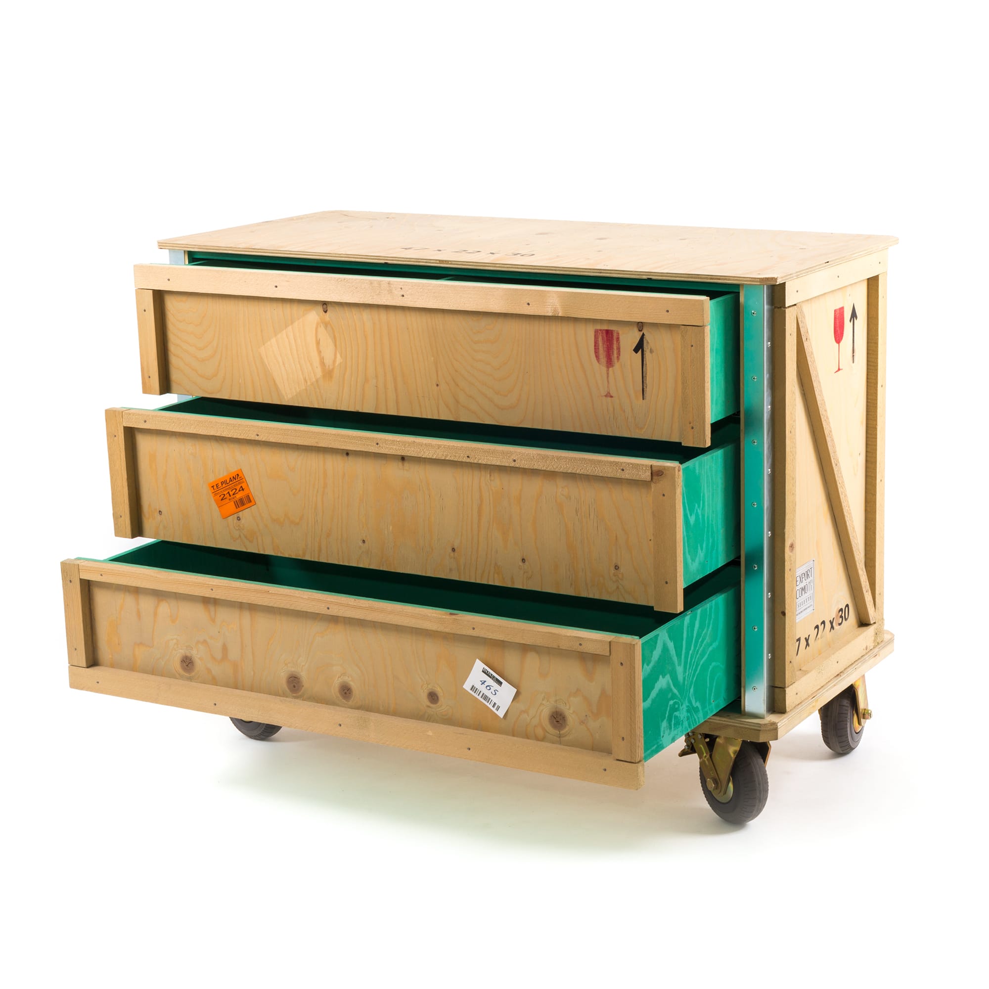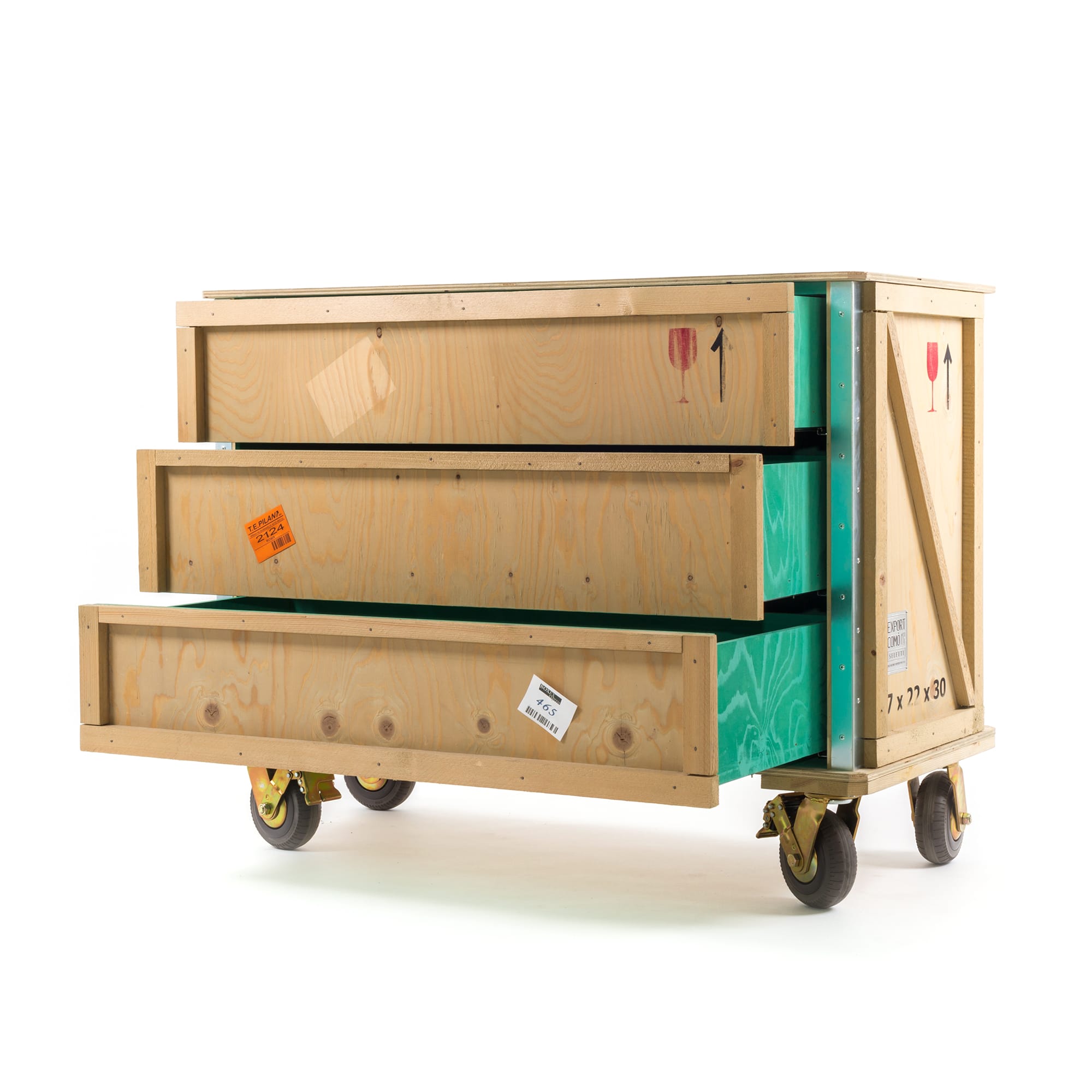 这款现代床头柜由Marcantonio Raimondi Malerba为Seletti设计,它融合了两种不同风格的设计。一个标有各种标签和标志的包装盒配上华丽的路易十四腿。明亮的绿色内部有一个架子和两个存储空间。手工制作的实木,这出口科莫床头柜是令人印象深刻的耐用性,因为它是在其独特的设计。它可以单独使用,在卧室或与来自ExportComo系列的其他家具一起创建一个焦点。意大利制造。