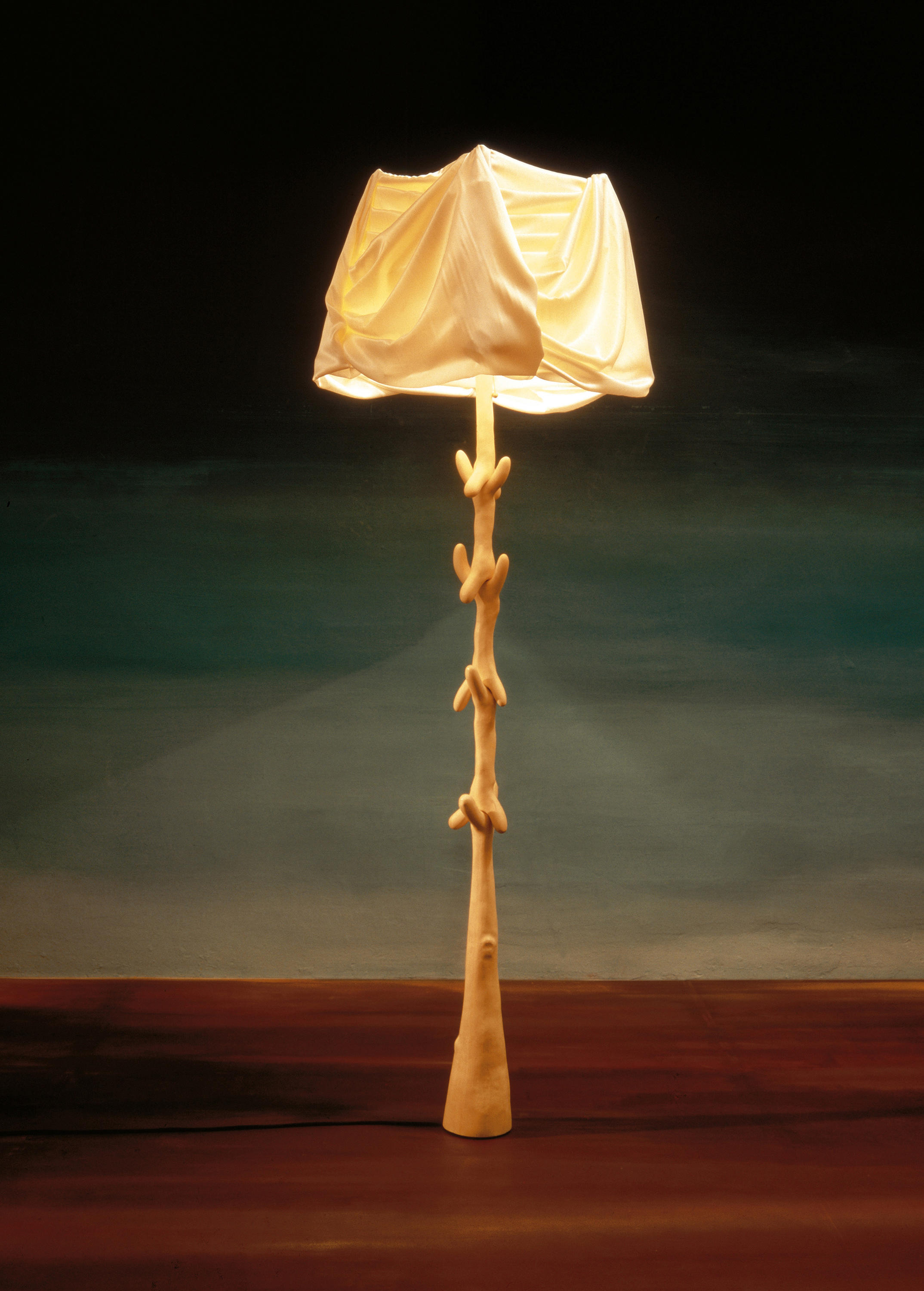 浅漆榉木支撑架。象牙色的棉和人造丝阴影,手工制作。