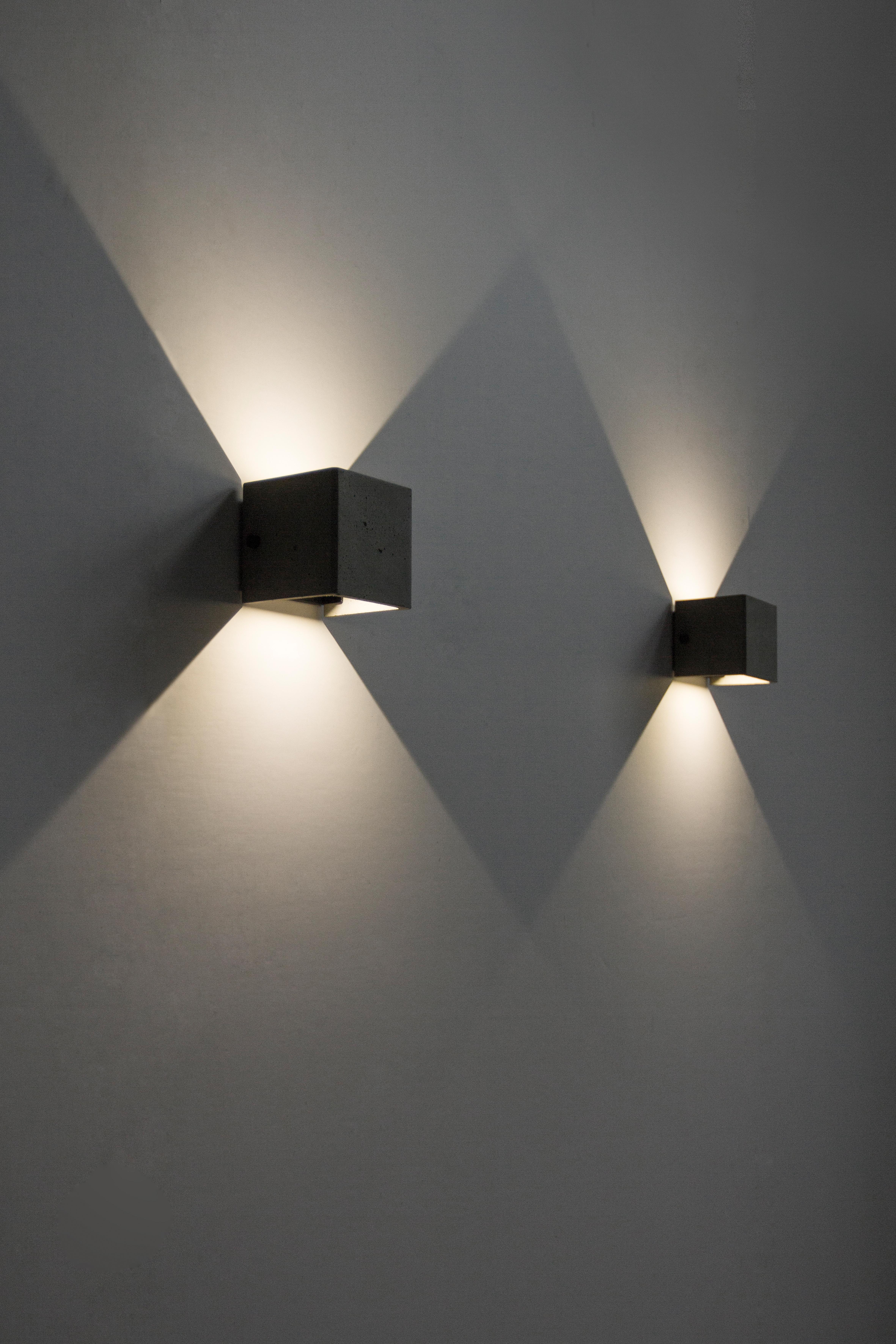 "V"壁灯可室内与户外兼用,防水等级 IP65; 内含挡光黑色金属片可以自由调节光线方向,呈现的光影效果丰富多变。