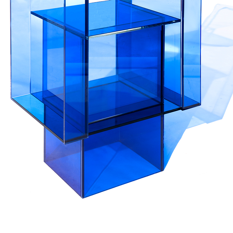 玻璃,工业化材料,可控性强。复合,让其可变性更丰富。 无影胶合,使面成体的几何构成,以及规则线条分割,理性分析发散创造。