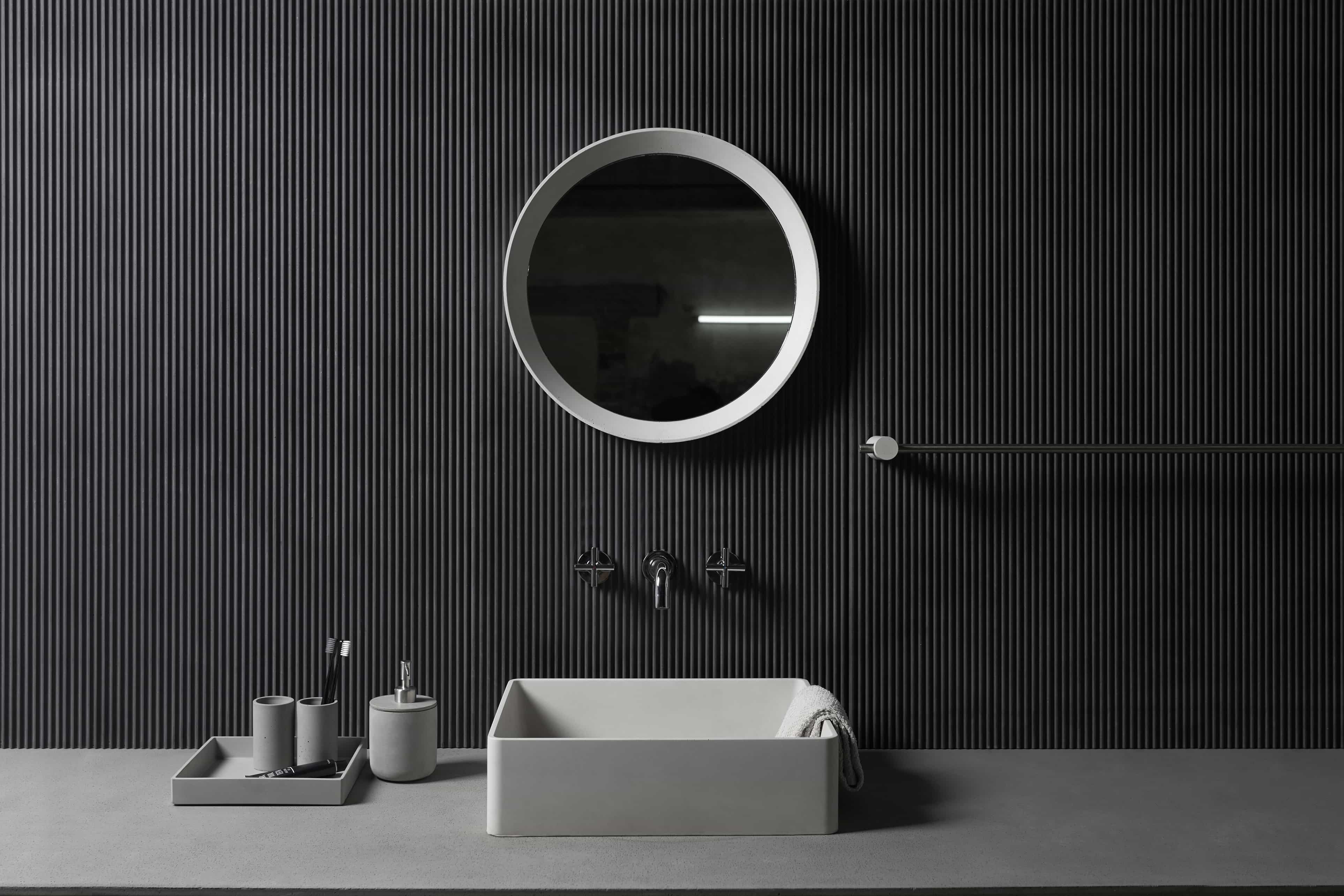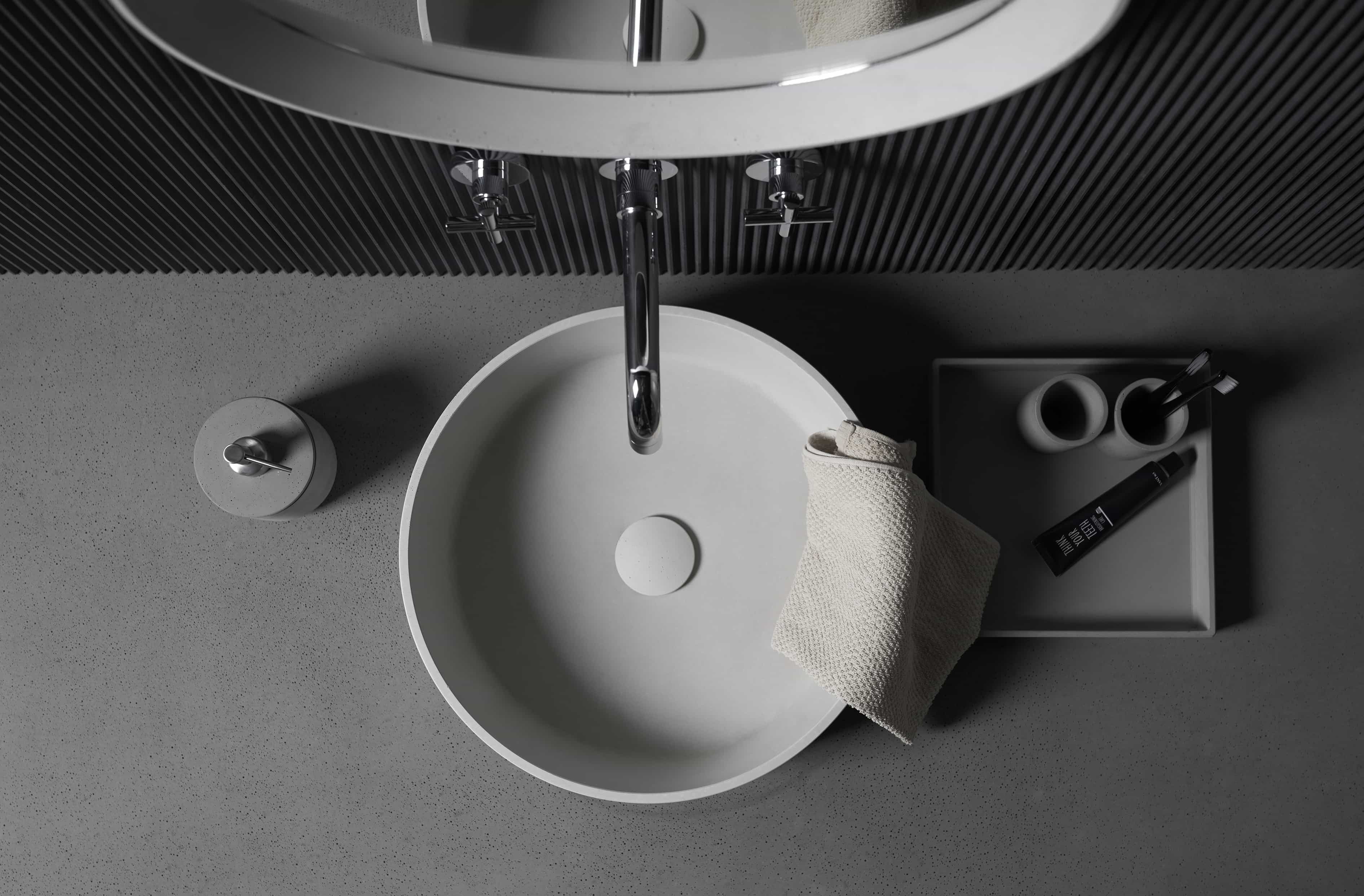 在日常中超越日常的沉沦,在现实环境中为解决自我的问题而进行实用的、经济的 日常思维,为我们的日常。日常的设计,需要非常的努力,需要超常的心态。 保留细腻的孔洞肌理,利落的收口细节。表面涂层处理,可抗污防水。对细节的执 着追求,独立设计混凝土配件,打造你我极致的日常。