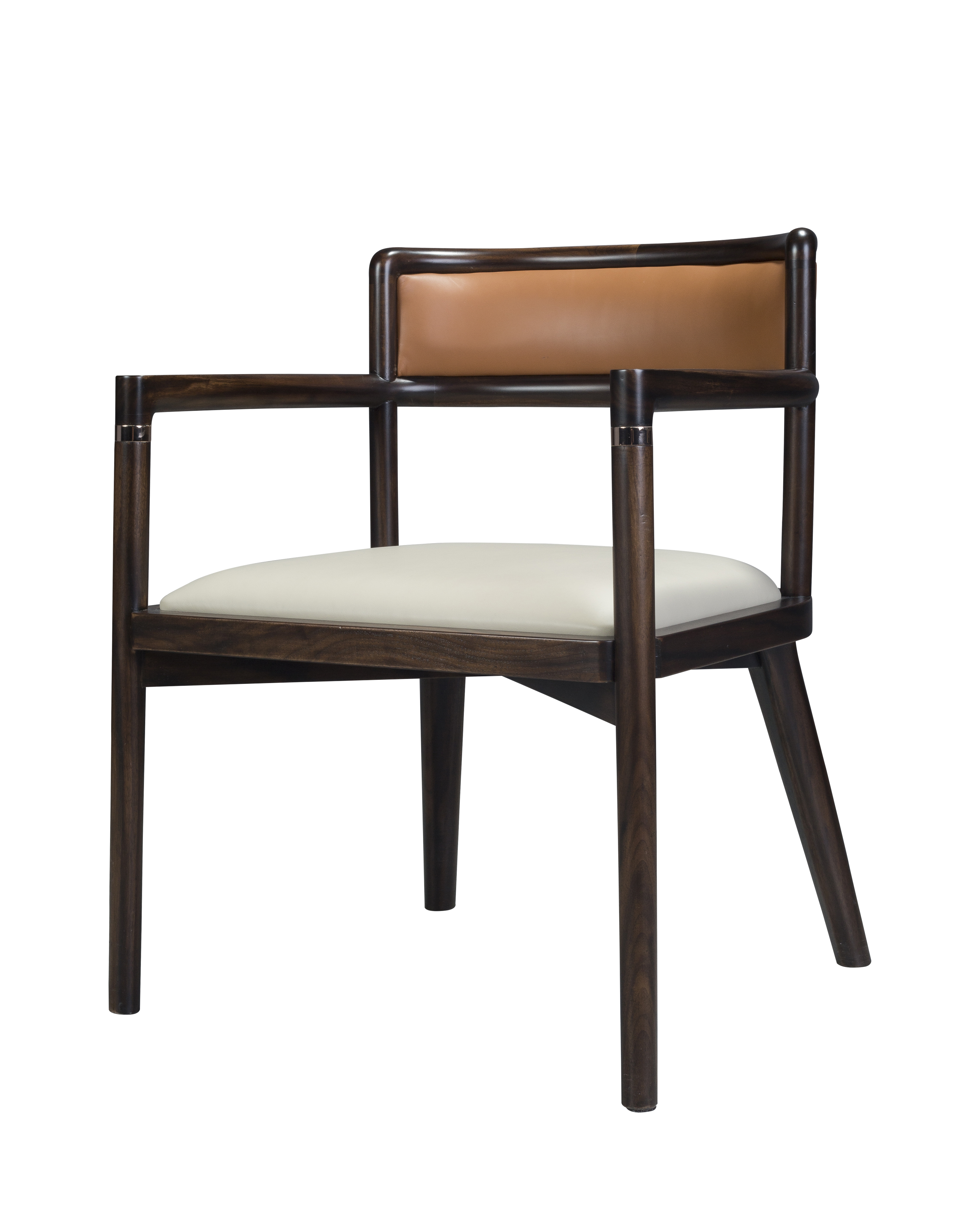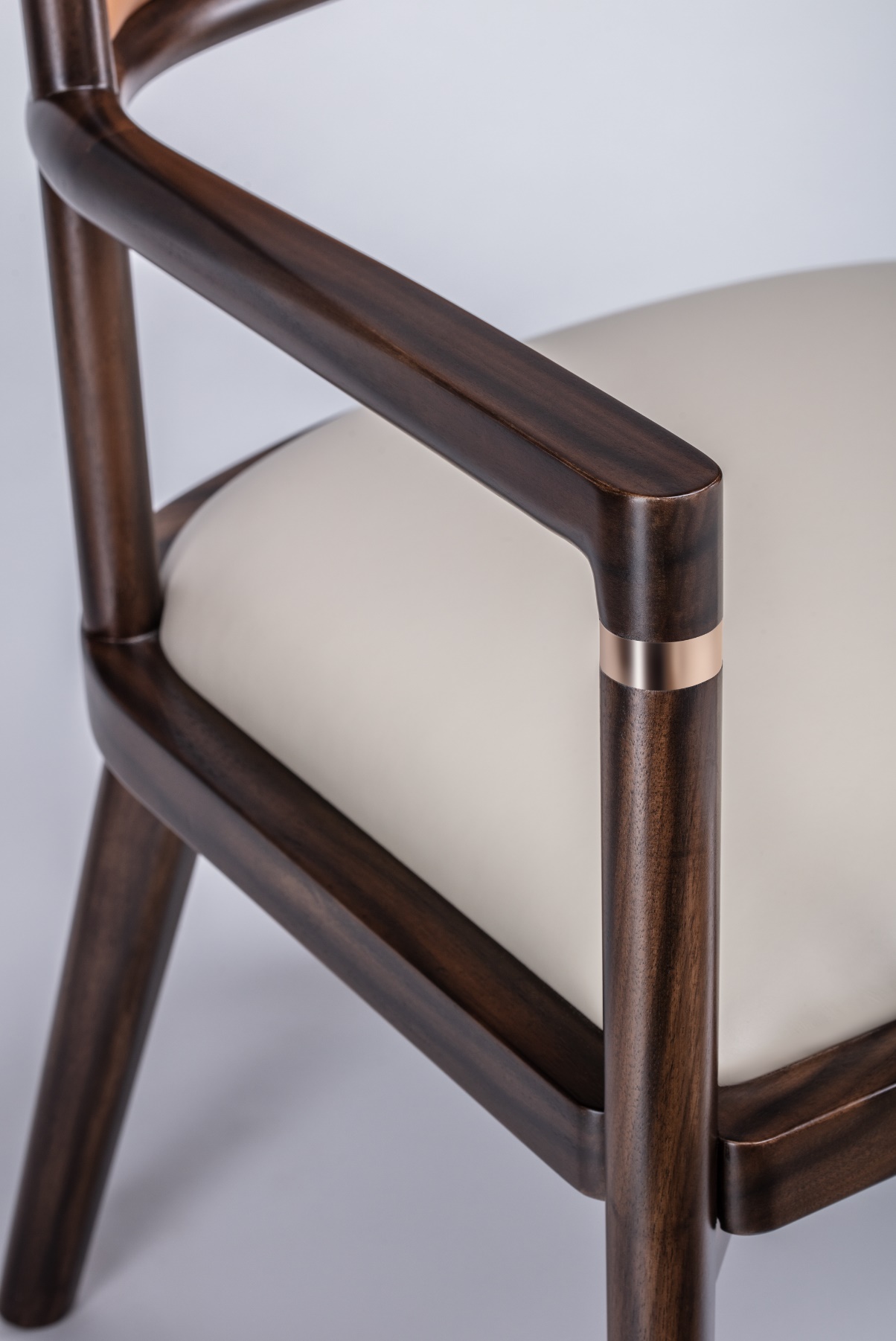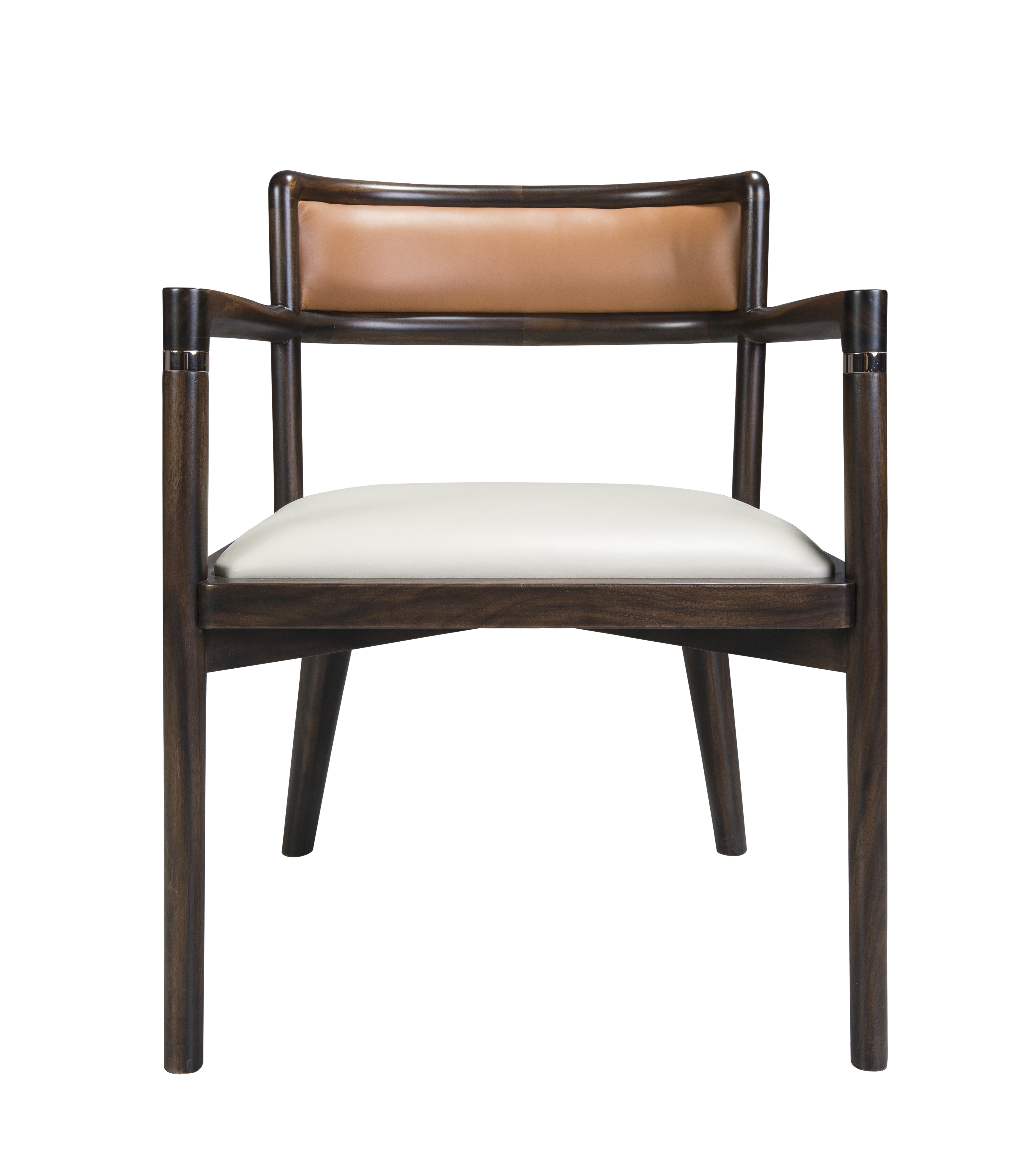 1.茶椅整体简洁干练,以线为主,通透灵动。 2.牛皮软包包饰坐感舒适,耐污易打理。 3.扶手前端装饰铜饰件,点睛之笔,细节精致,彰显价值。