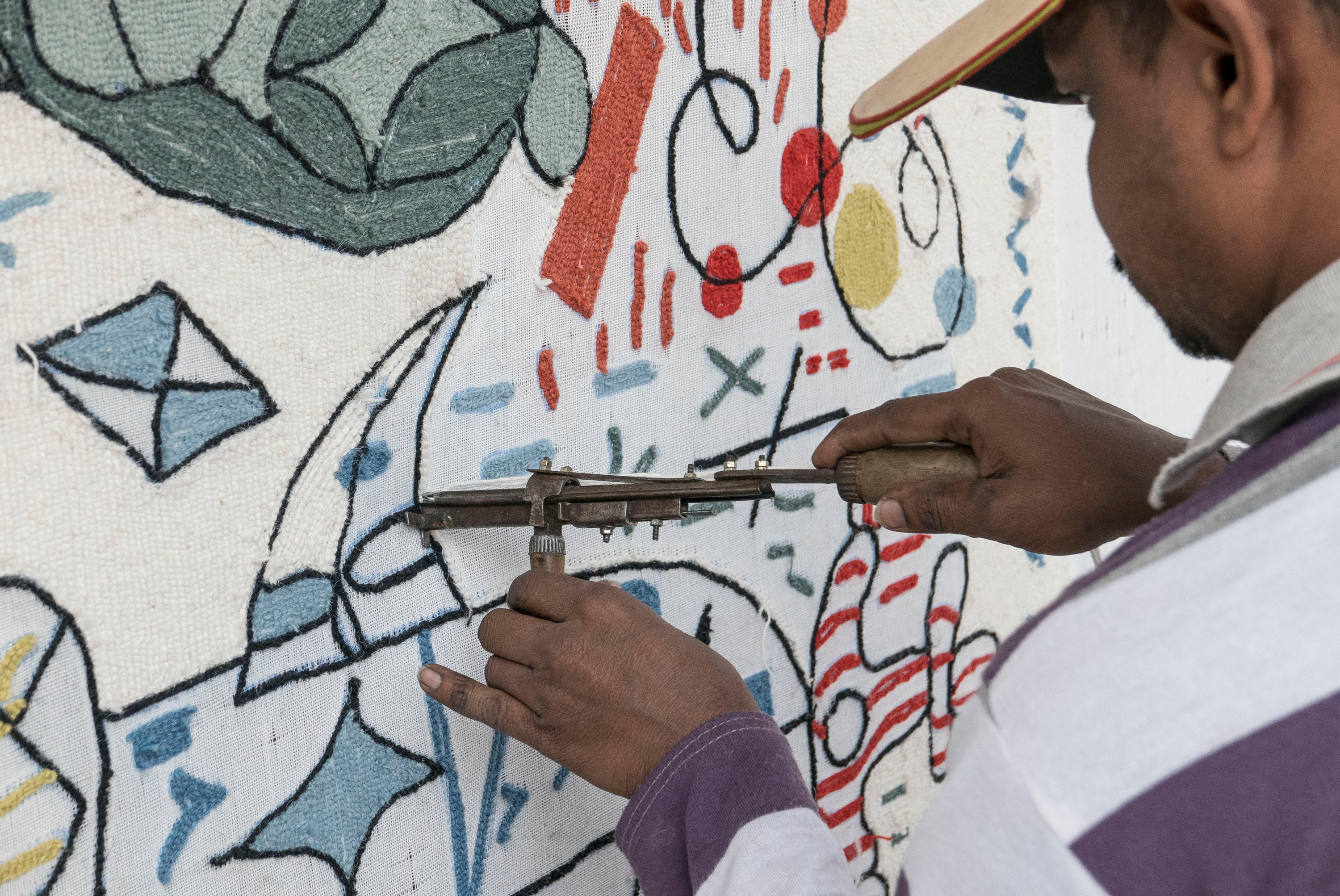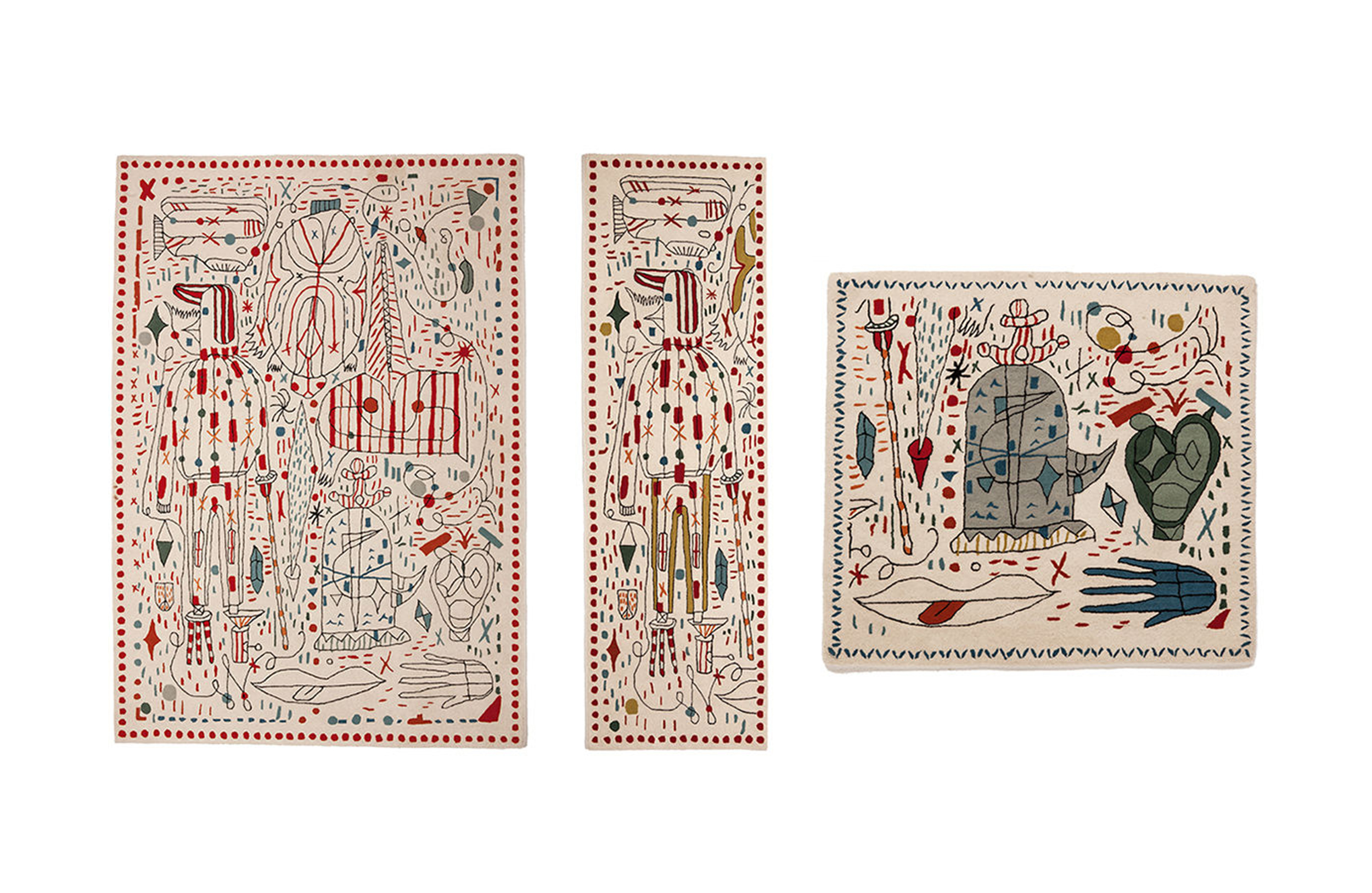 第一眼看到的是一片混乱的颜色和形状,它们侵入了地毯。然而,在仔细看,Jaime海因弹簧的想象力生活:海龟、嘴唇,手,凳子,鱼,男人等等...