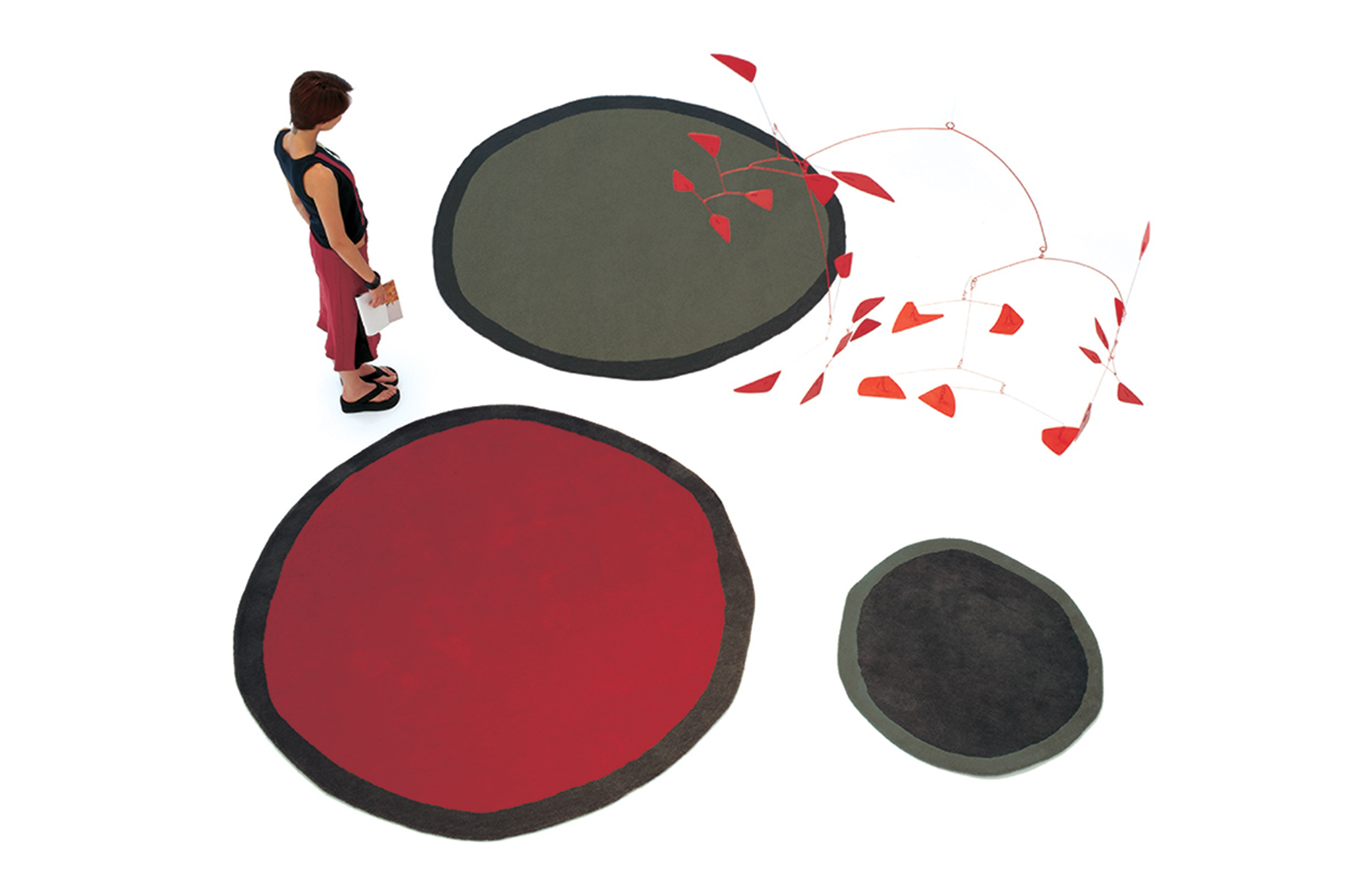 近乎完美,近乎平静,近乎谨慎,轻率,几乎是快乐的。不规则轮廓的简洁定义了每个Aros地毯的形状。