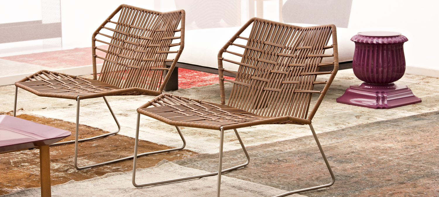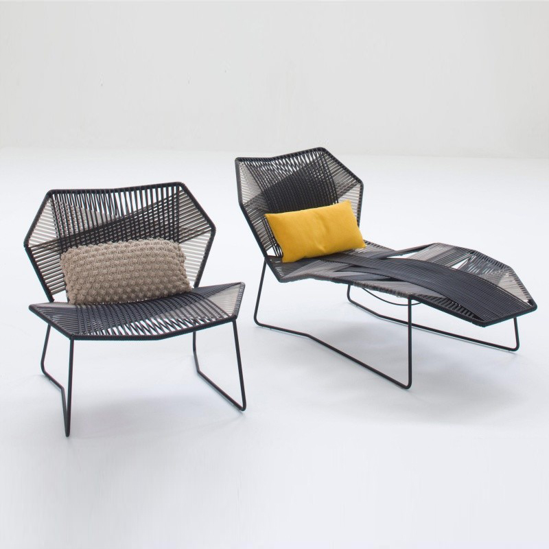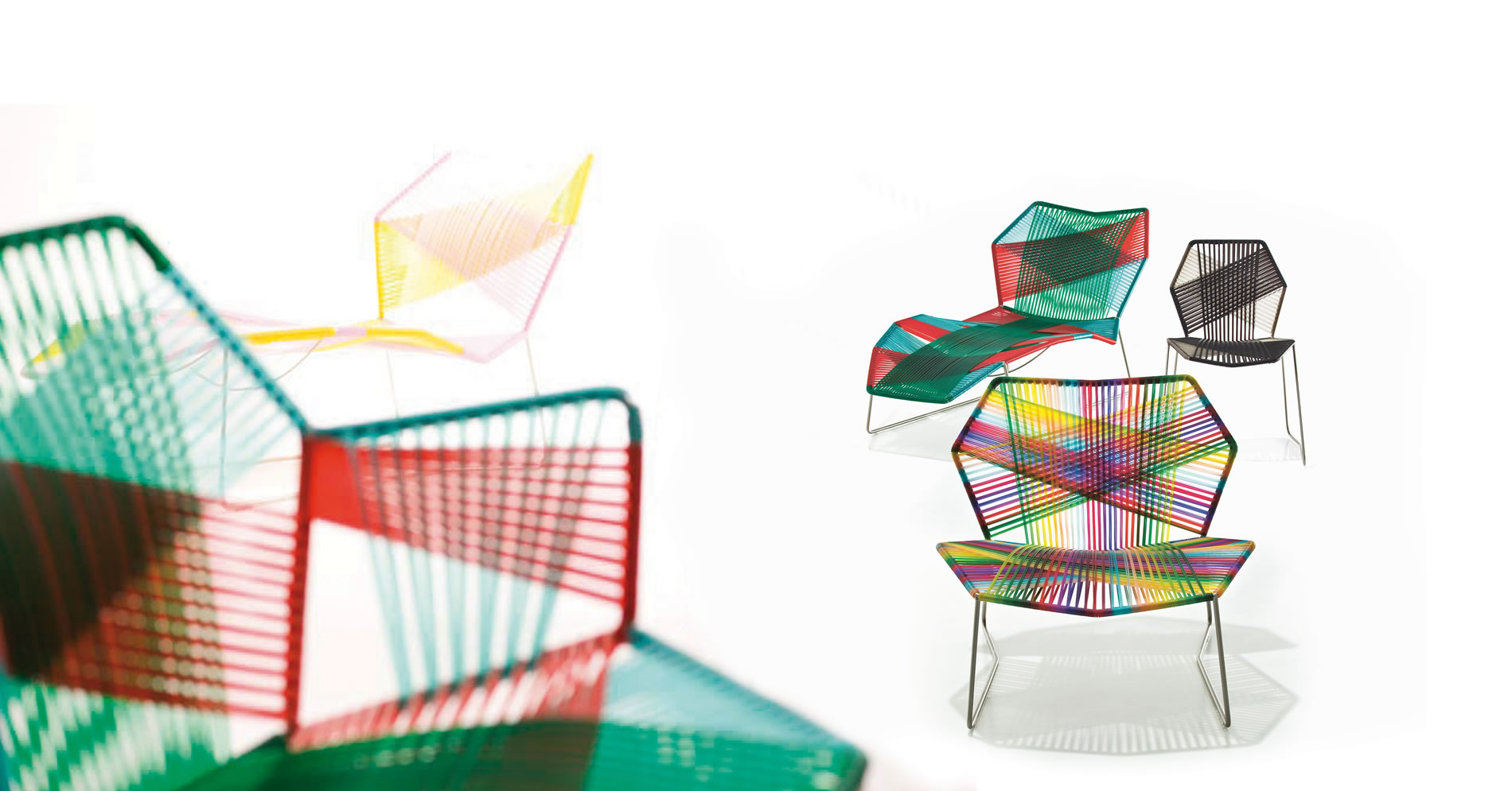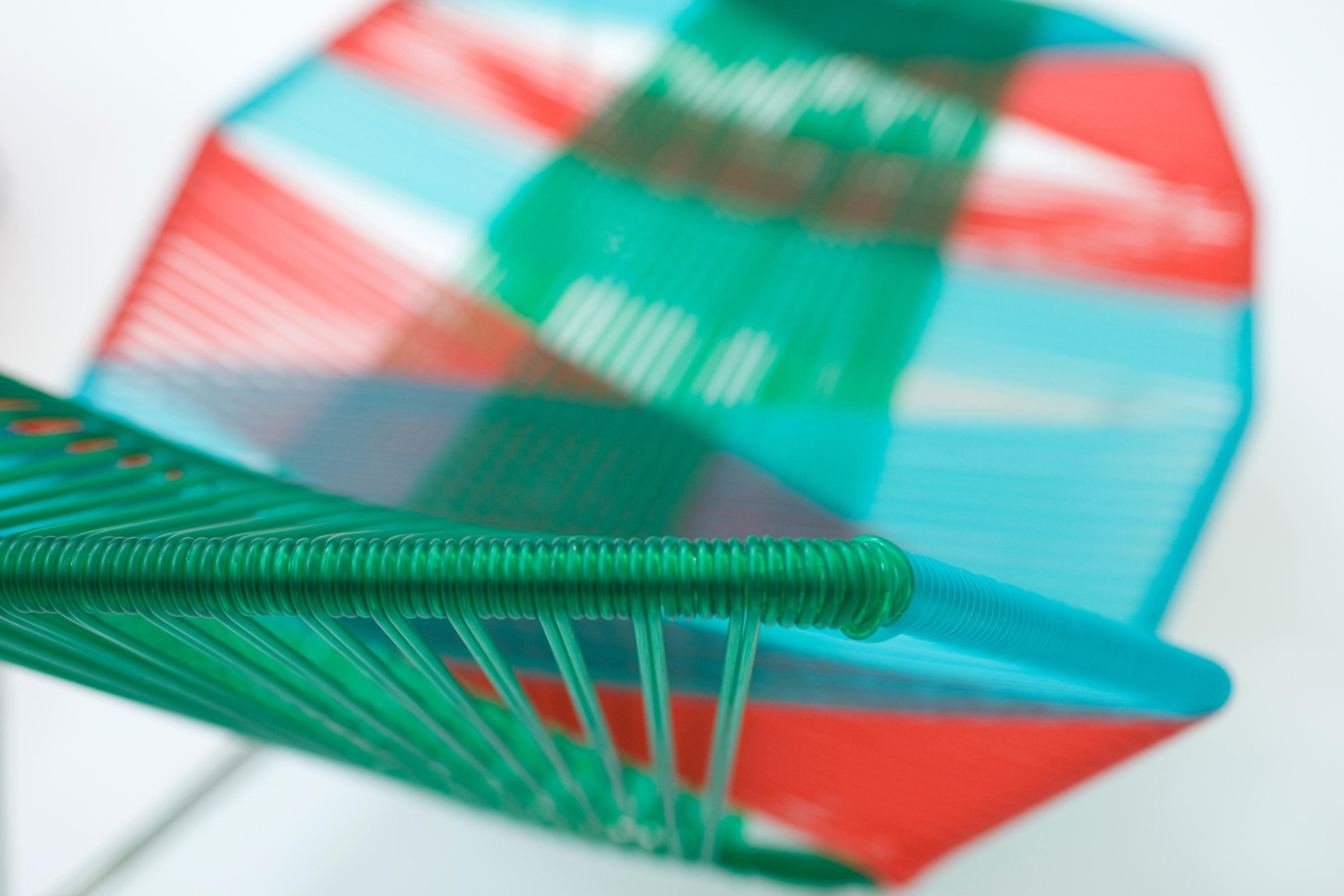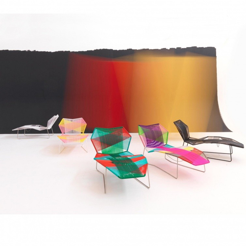 安蒂博迪(Antibodi)的钢管框架成为设计师用于创意改造的起点。框架被包裹和变换,座位根据所使用不同颜色的材料呈现不同的个性。两到三种颜色的线条以螺旋的方式将钢管包裹起来,形成了一种有趣的颜色复杂的设计。