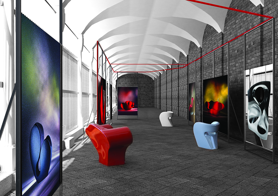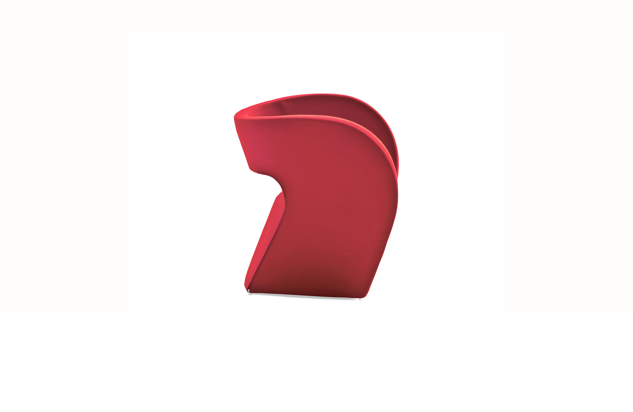 一条连续的曲线线条,一种不会将铅笔从纸上提起的图像形式。 最初是为雕塑提供灵感的'甜甜圈':压扁,并重新制作,使用讽刺超越通常的做法工业设计。然后是在内部玻璃纤维框架上的填充物和缝制对称的室内装饰品,揭示了设计的技术和表现优点之间的相互作用。它永无止境的线条是敏感而强烈的,表面和形式,身体和皮肤之间的完美协调。 织物伸入其周围的空间中,放大并增强了该物件的材质,而不会中断或压倒其流动性。