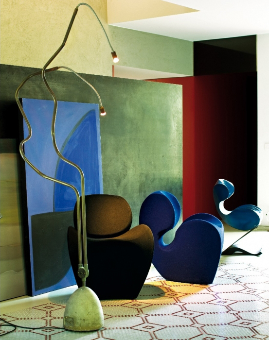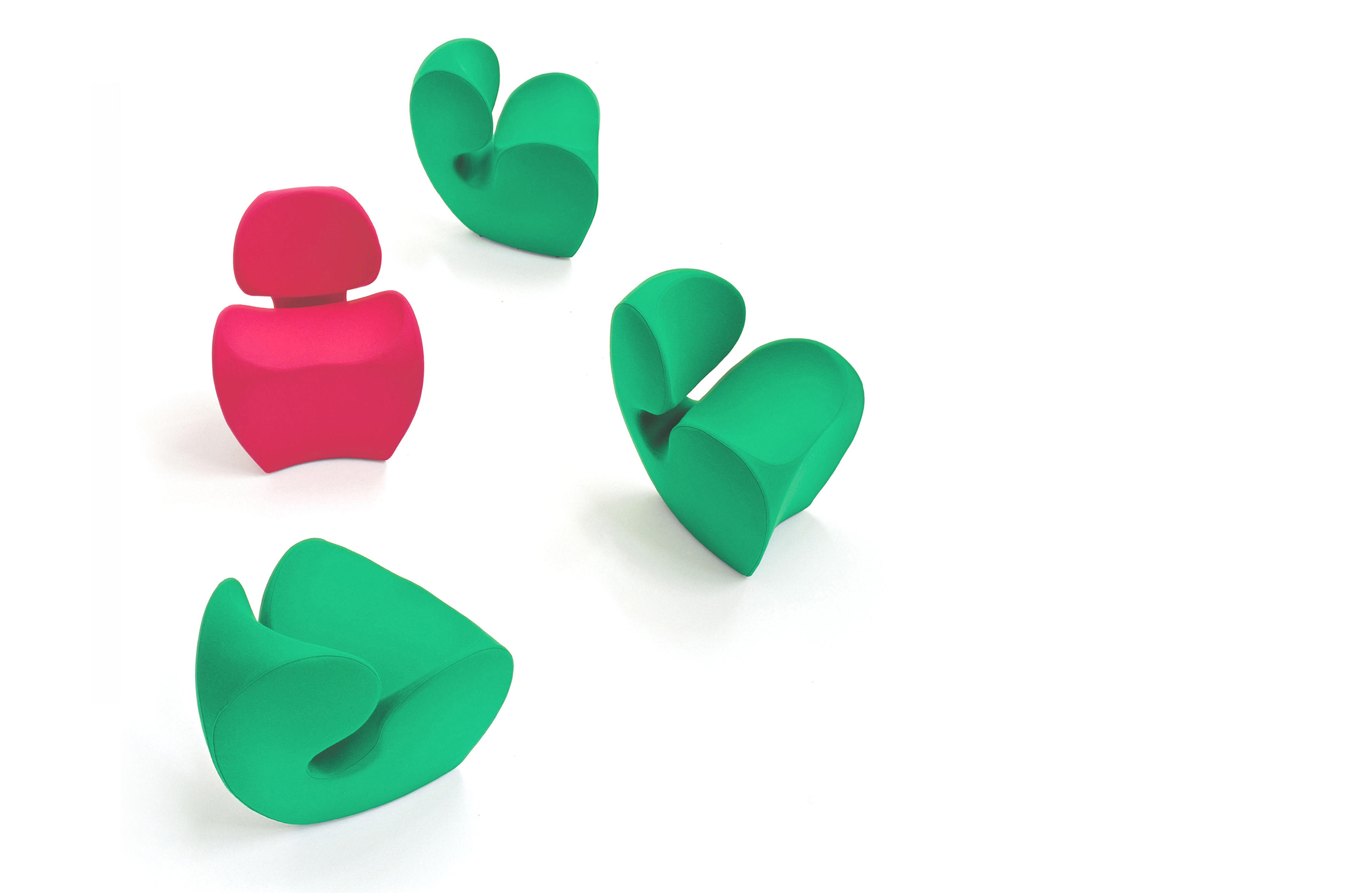 由Ron Arad在1988年设计的一个大的简单的钢椅,展示了一种简单的形式,可以在不影响设计原则的情况下,通过对材料和生产过程的重新解释而被翻译。从建设性的姿态获得的模型变成了工业生产;视觉的柔软和丰满的体积,舒适。更容易探索旋转模制和聚乙烯的使用;在冷泡中柔软的版本,用聚酯纤维包覆,触觉表面的转换;在元素的集合中,形态学和动态形式。
