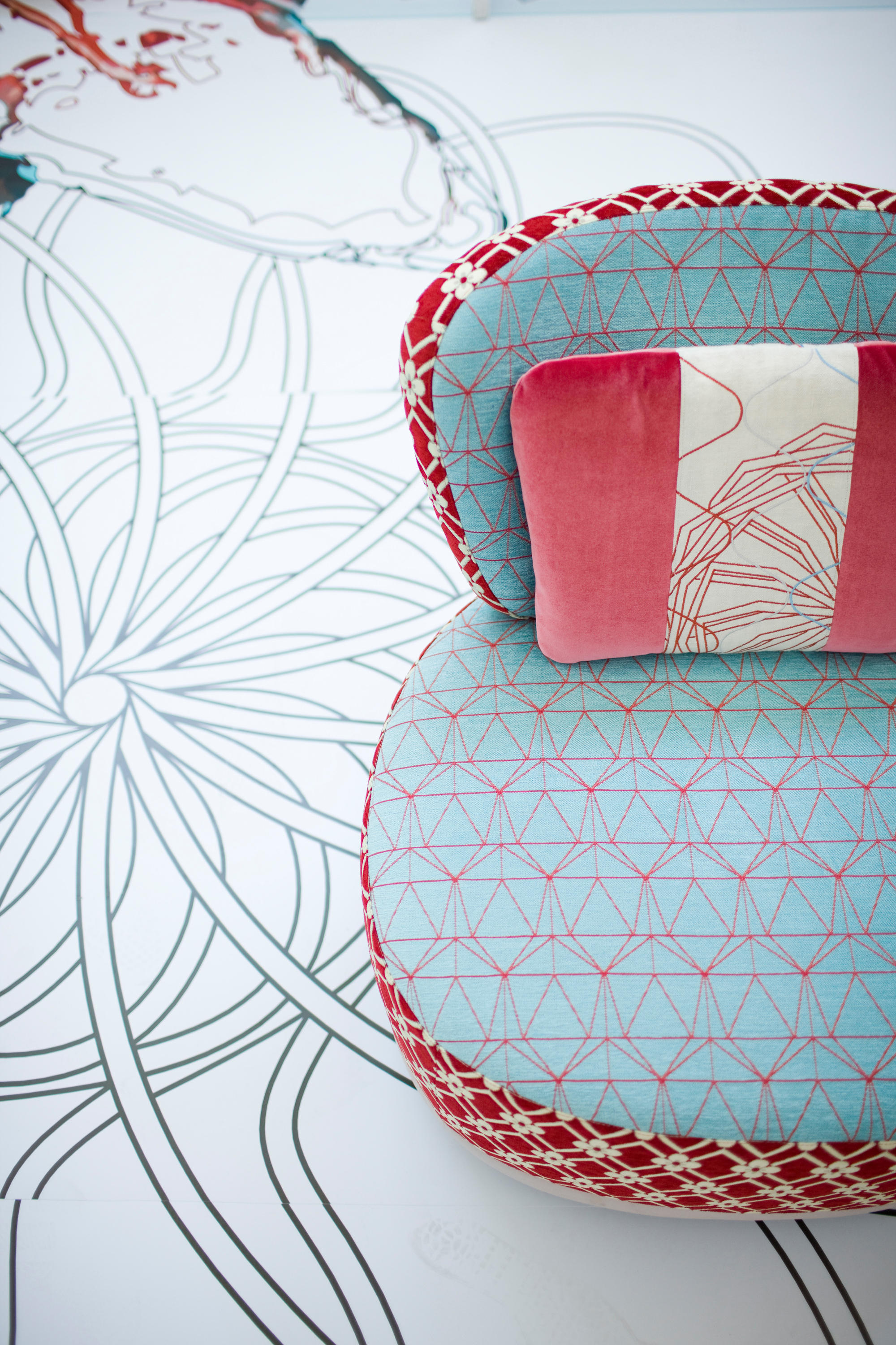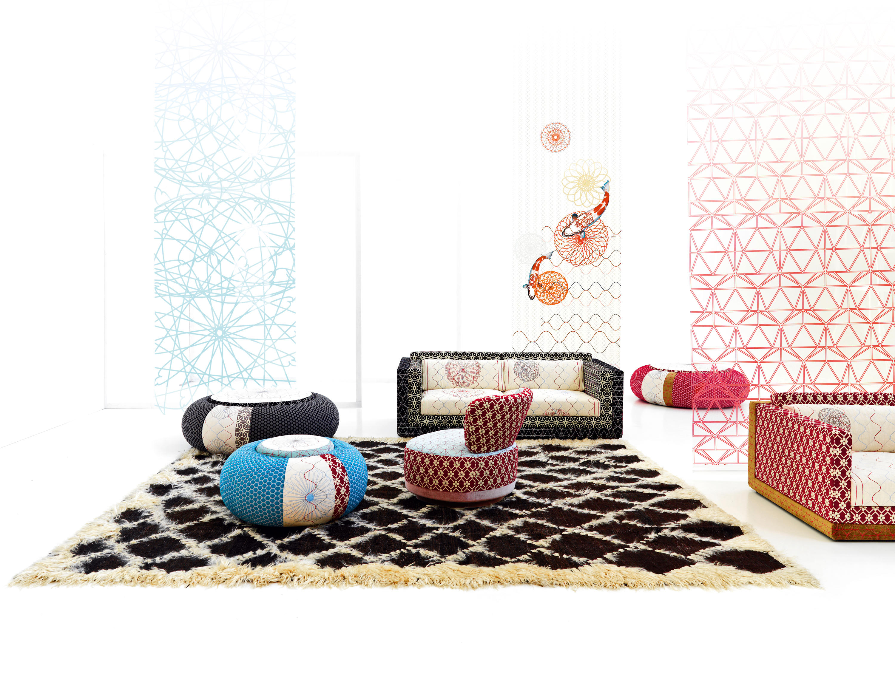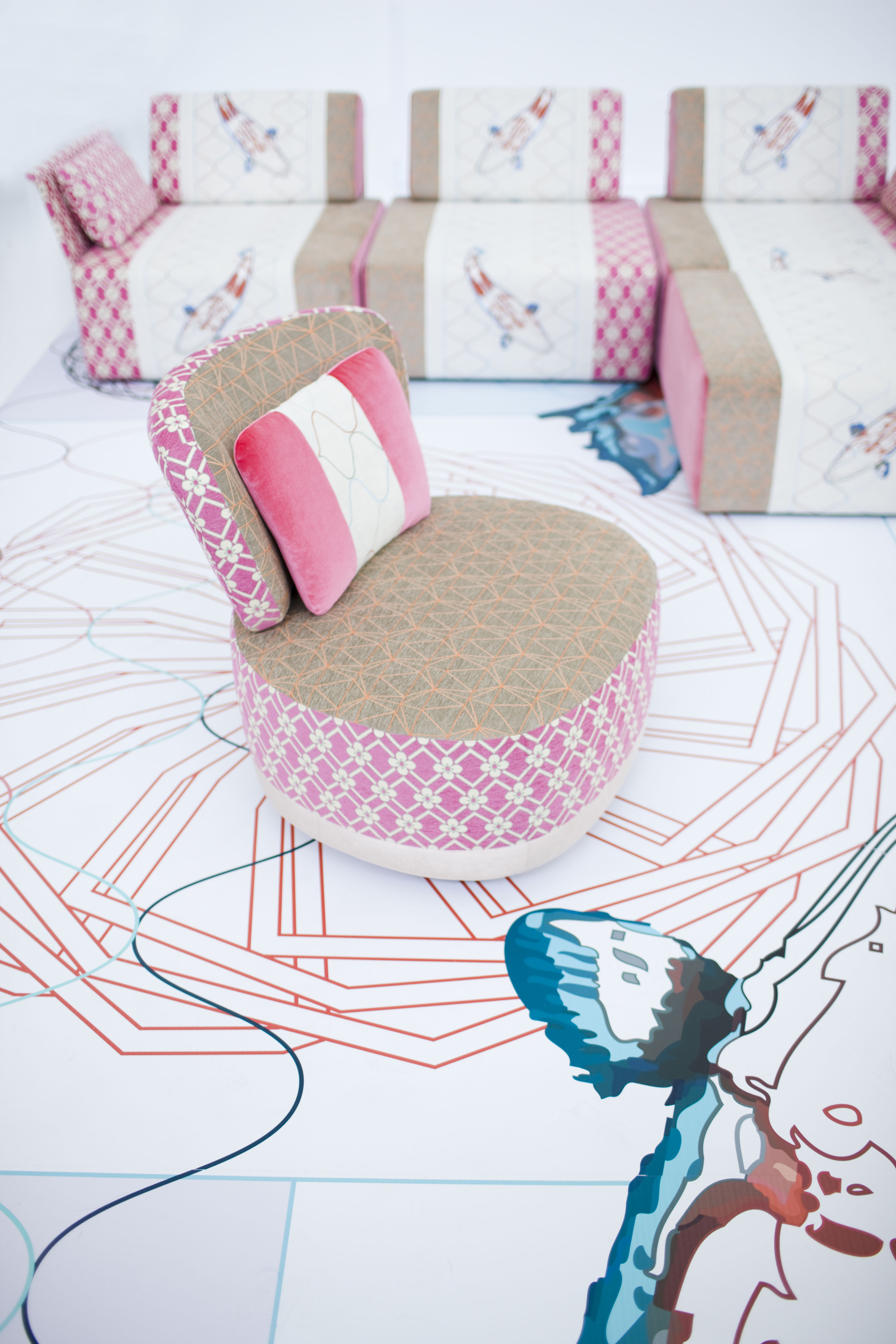 寿司收集、Karkaoma,Juju, Donut, Joy, block seat,东方的象征意义,花卉图案和数字网格:集合中发现其身份分层的丰度。有各种各样的输入和刺激的积累,一种从建筑形式到民间传说的各种图像的疯狂流动。传统的,未来主义的,数字理性的,三维的,浪漫的,迷幻的兴奋,视觉上的大融合,对空的恐惧,和谐的,不端庄的,精致的,几何的严重…无尽的图像和视觉,既不害怕也不威胁,而是欢迎用户进入一个柔软的,催眠的万花筒。