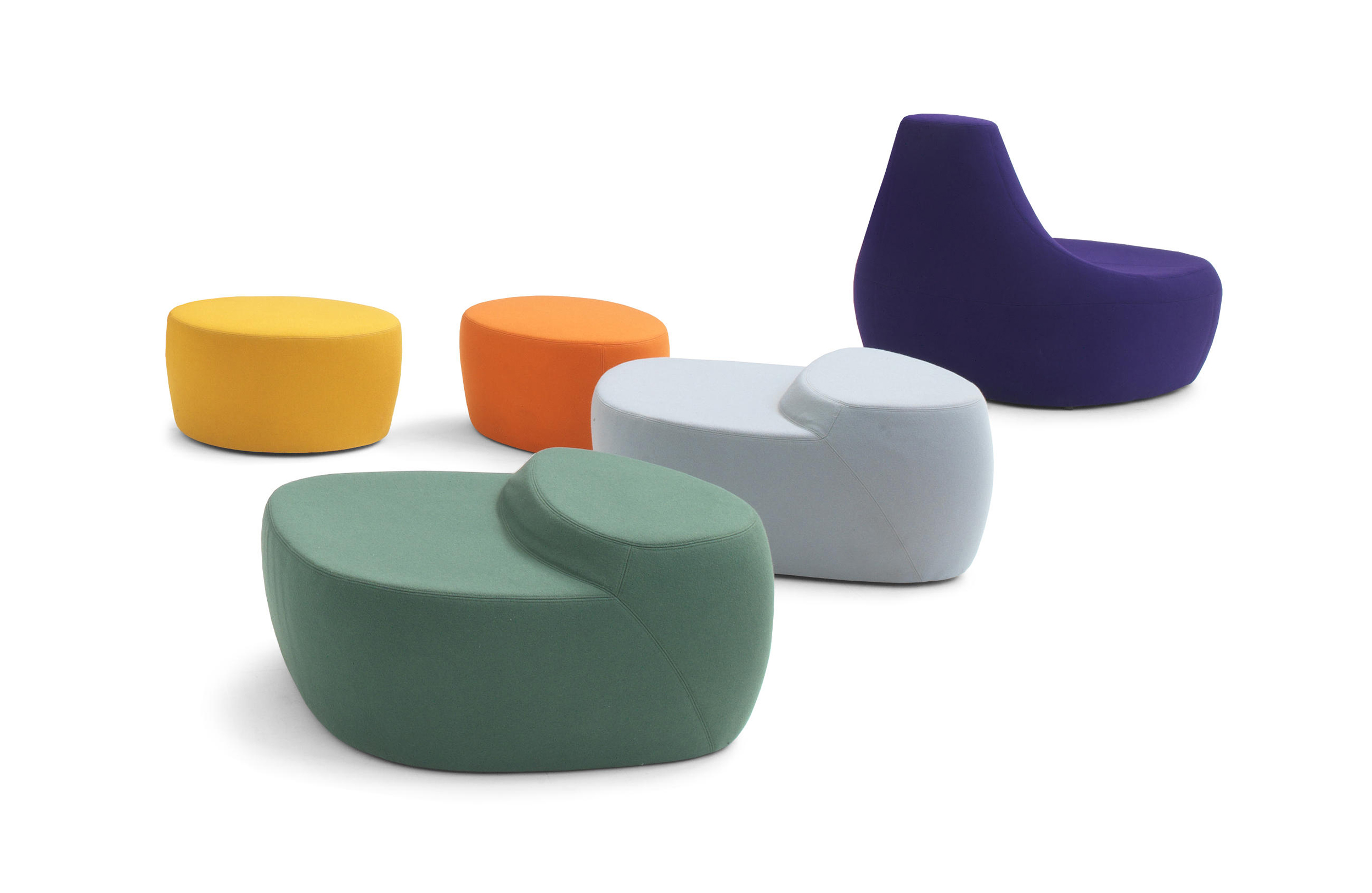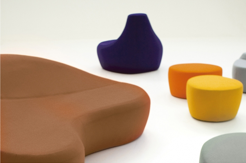 第一个Saruyama,它的地貌形态,一个非常抒情的物体,是由三个模块组成的,它们结合在一起,形成一个巨大的圆形岛屿,不同的一个从另一个中提出对座位的自由诠释。