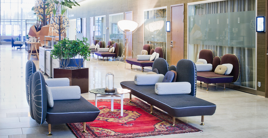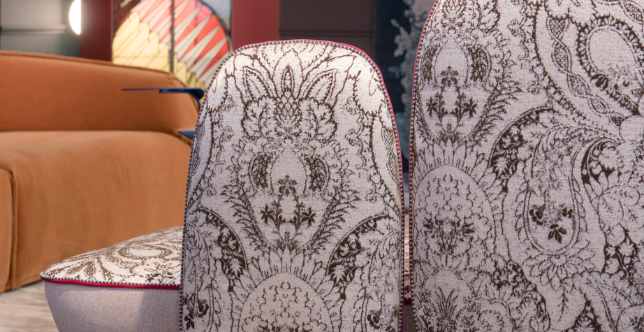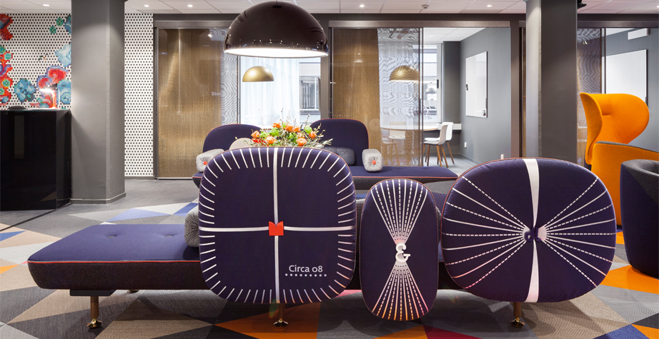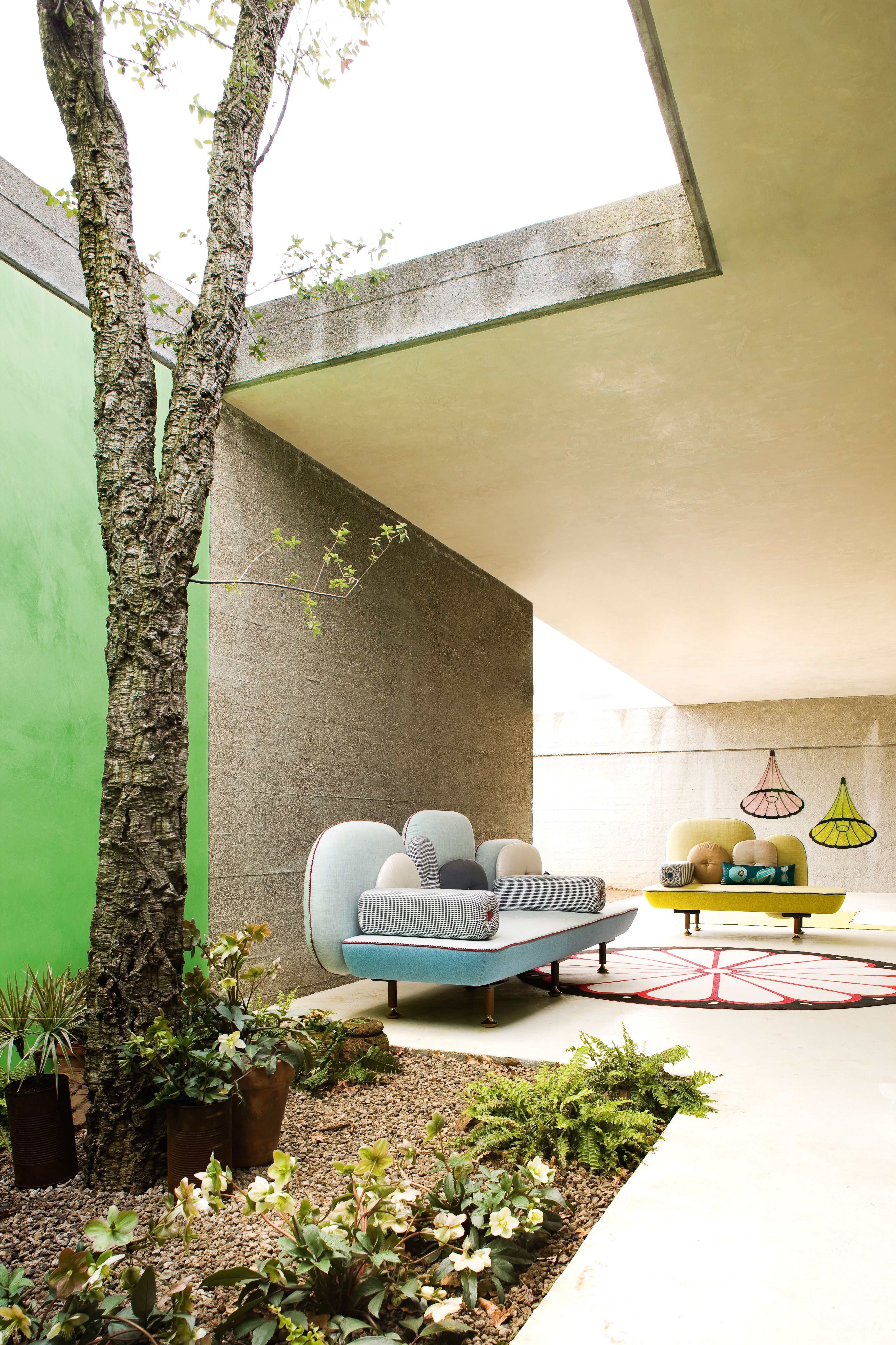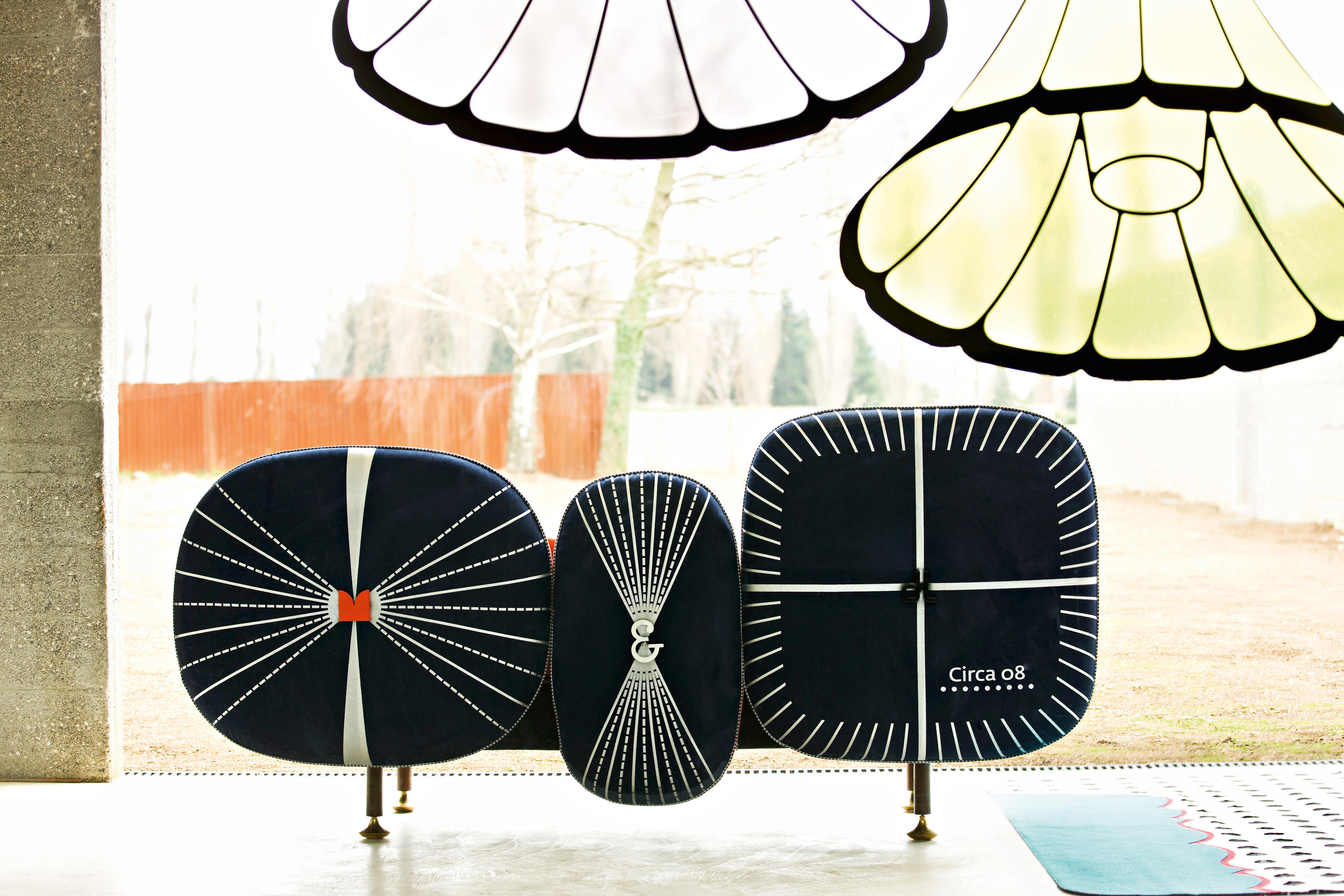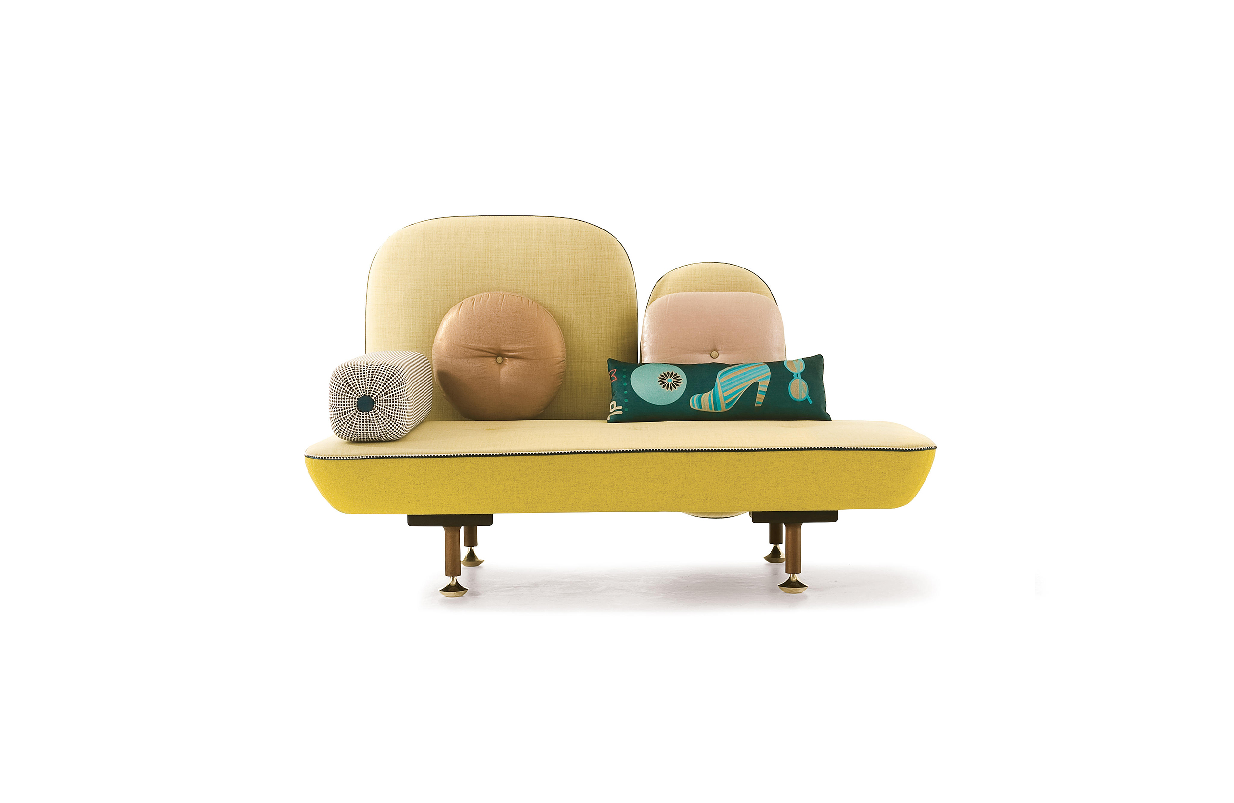我美丽的背面是一个座椅的集合,它的靠背是由各种形状的高颜色的浮动靠垫组成。座椅越宽,可以使用的垫子就越多。我们使用超大的符号,比如靠垫上的按钮,是一种传递各种信息的方式。这些符号也提供了一种定制椅子的方法,让它变得独一无二,就像你对一件衣服的区别一样。上面的床垫上覆盖着不同的物品,因为他们从一个现代的公主身上得到灵感,他们用金和银镶边。