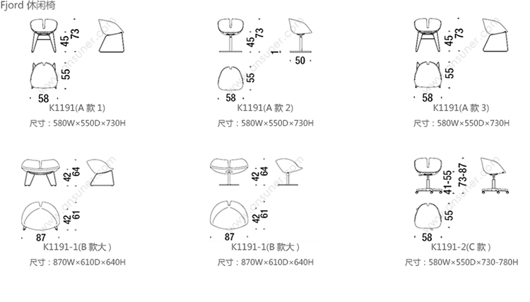 Fjord 会议椅 系列尺寸/示意图